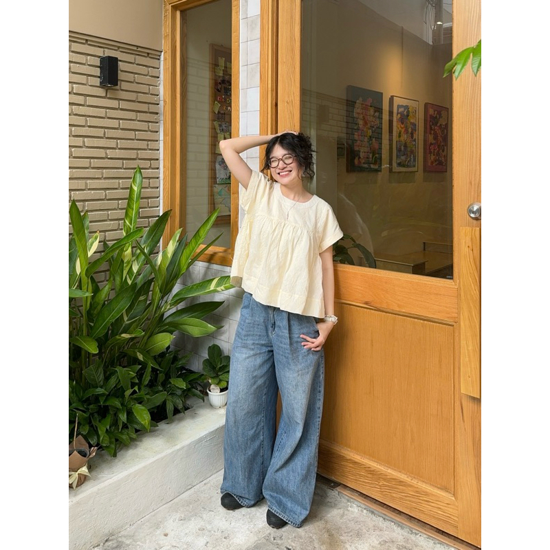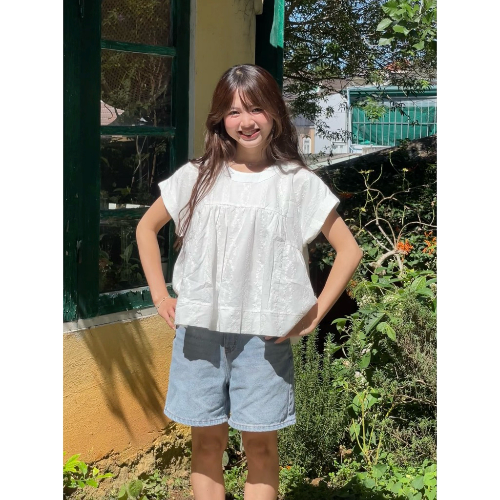 DOXI - Áo Babydoll Cổ Tròn Hoa Thêu BERI
