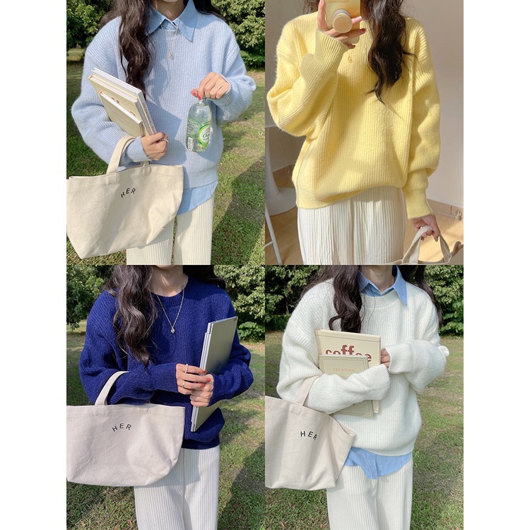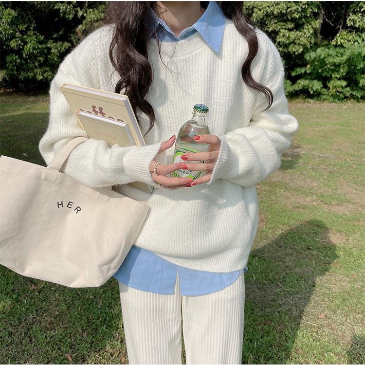 ( SẴN) Áo Len Dài Tay Cổ Tròn Phong Cách Hàn Quốc
