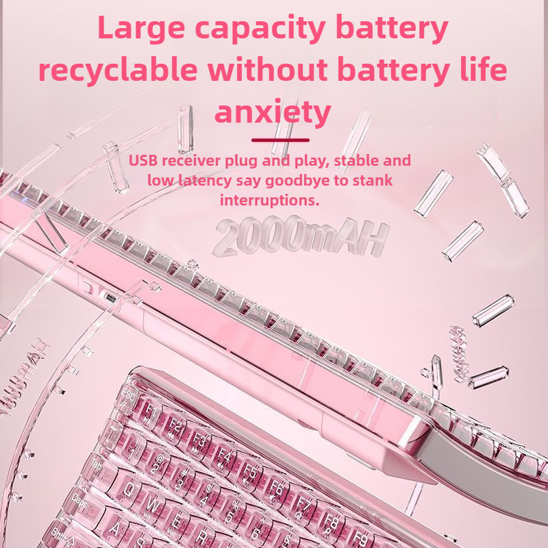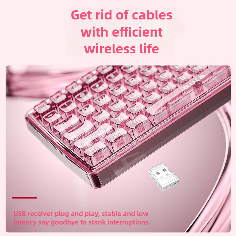 Aula AK208 Bàn phím không cơ Bàn phím không dây trong suốt với 99 phím Bàn phím chơi game cảm giác cơ khí Sạc cho nữ Văn phòng Thẩm mỹ cao Giá trị di động
