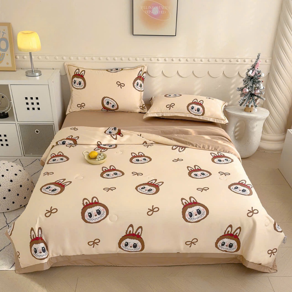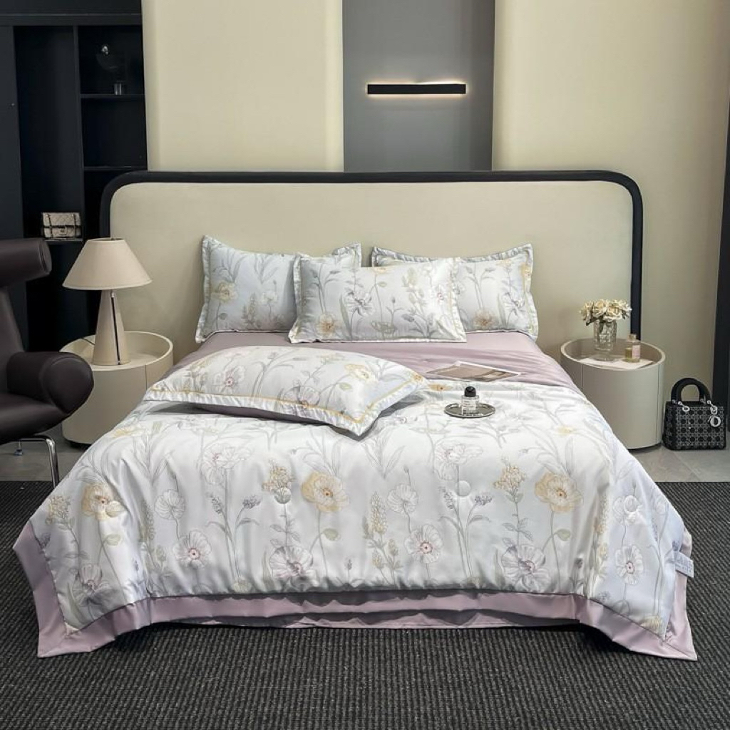 Bộ chăn ga gối lụa Thái trần bông, sét 4 món ga gối mền hè mát lạnh không phai màu không nhăn mẫu mới 2023