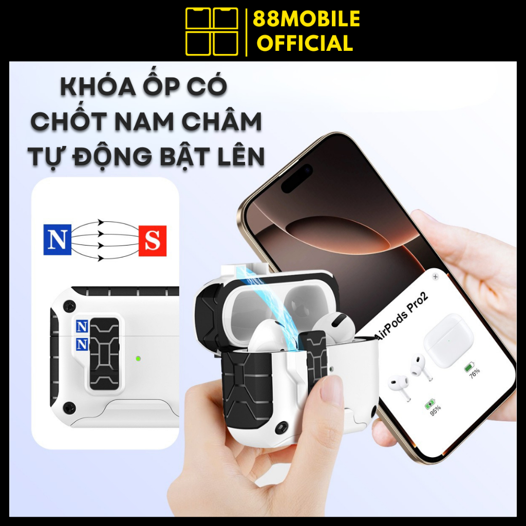 Vỏ Ốp Case AirPod EdgeLock Nam Châm Từ Tính, Chống Sốc, Giá Đỡ Điện Thoại dành cho tai nghe 4/Pro2