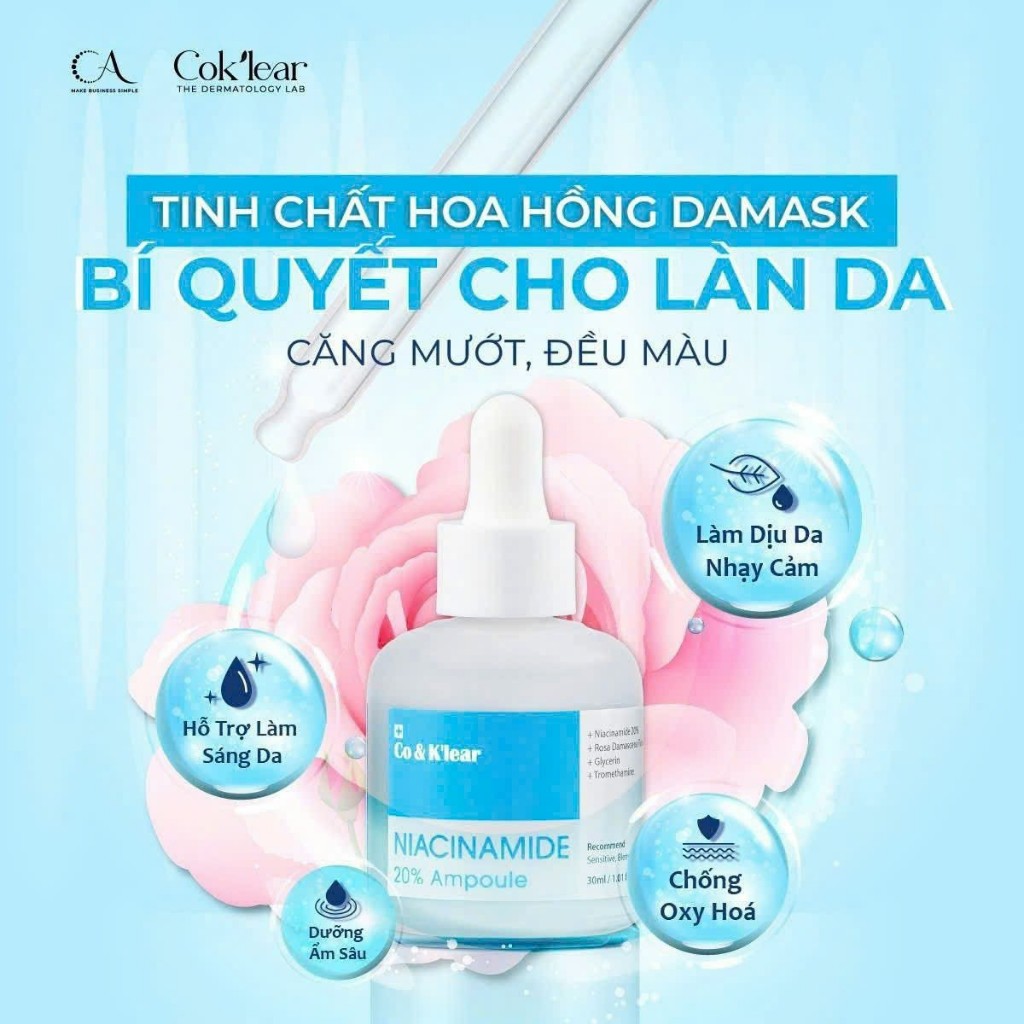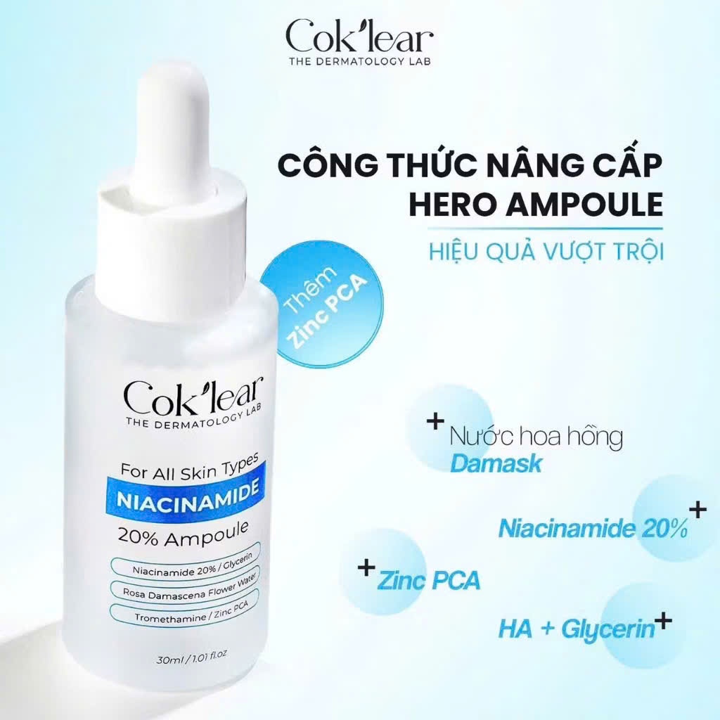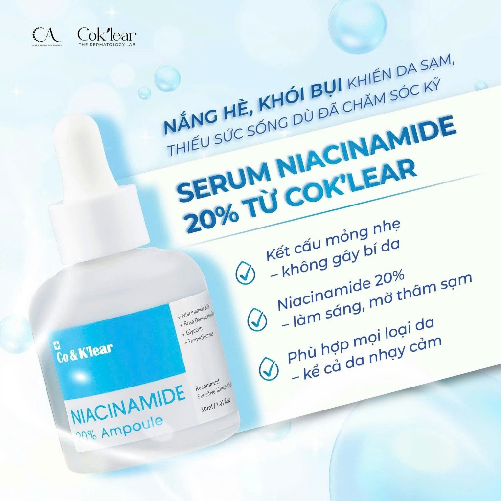 Tinh Chất Sáng Da Mờ Thâm Co&k’lear Niacinamide 20% Ampoule 30ml, Giúp đều màu da, kiểm soát bã nhờn