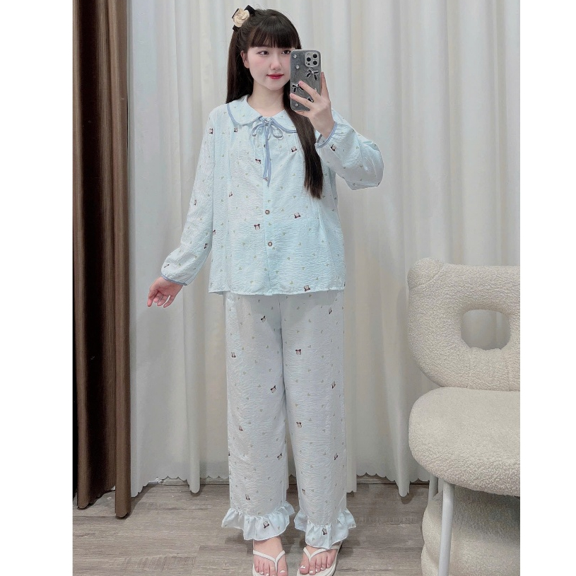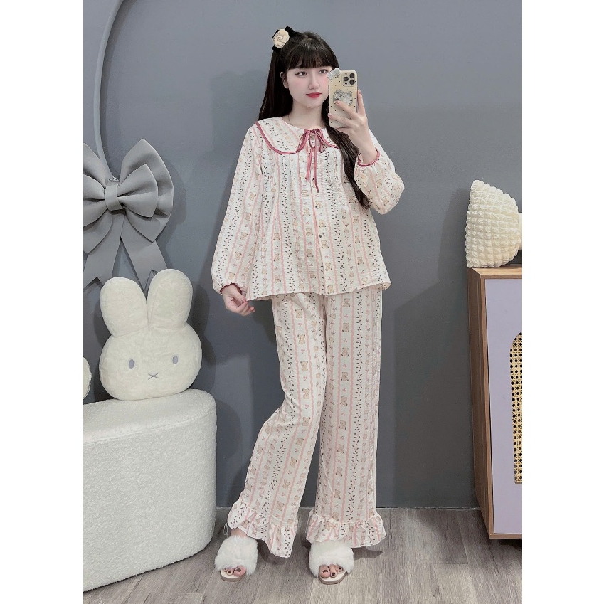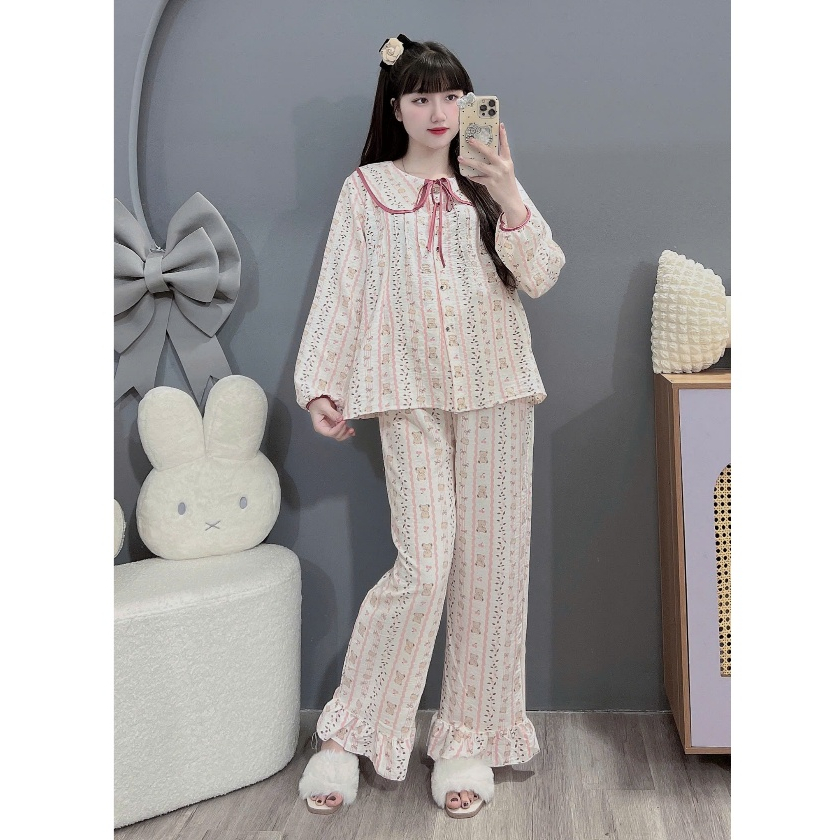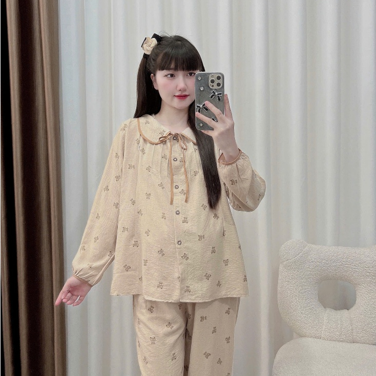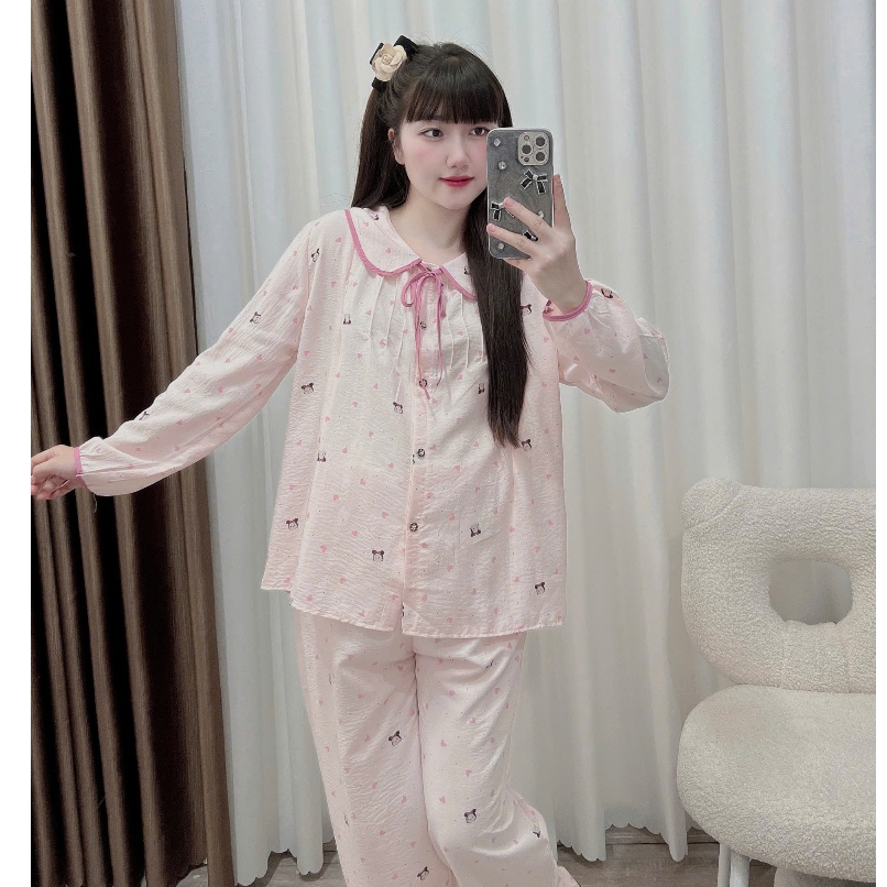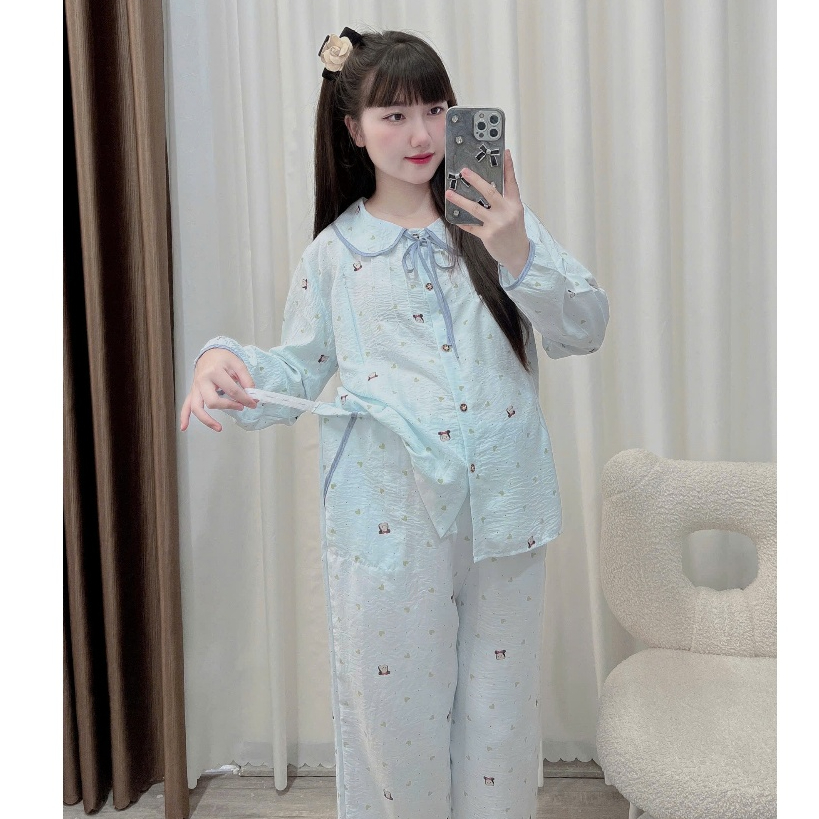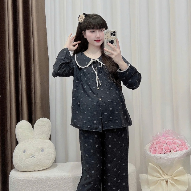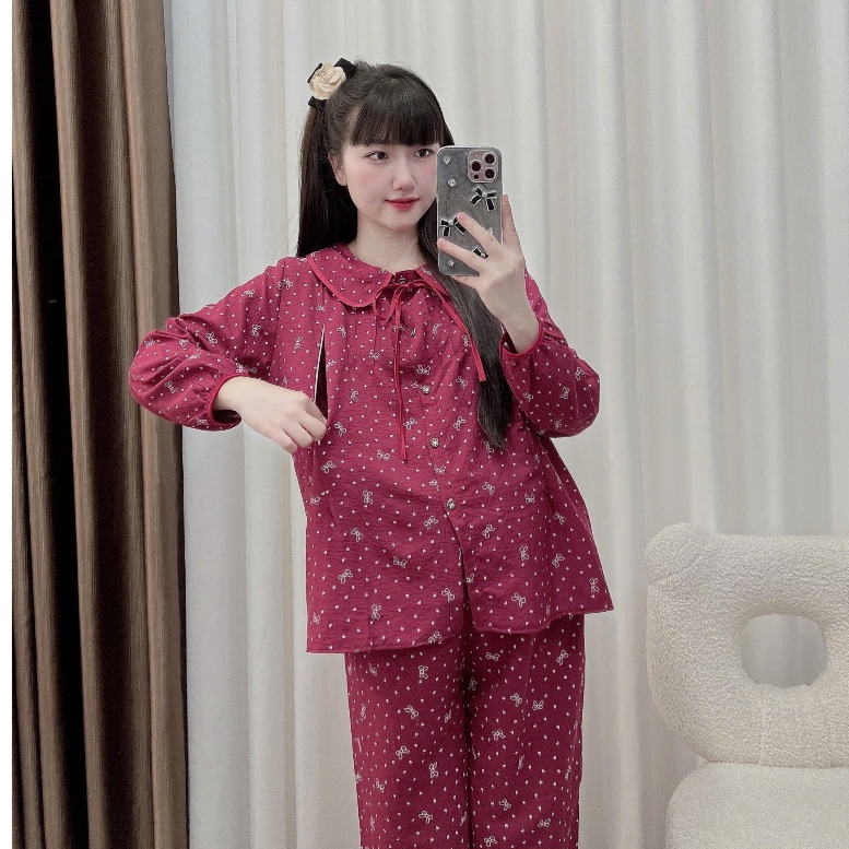 (45-100kg)Bộ đồ bầu và sau sinh bigsize chất đũi hàn phối nơ xinh