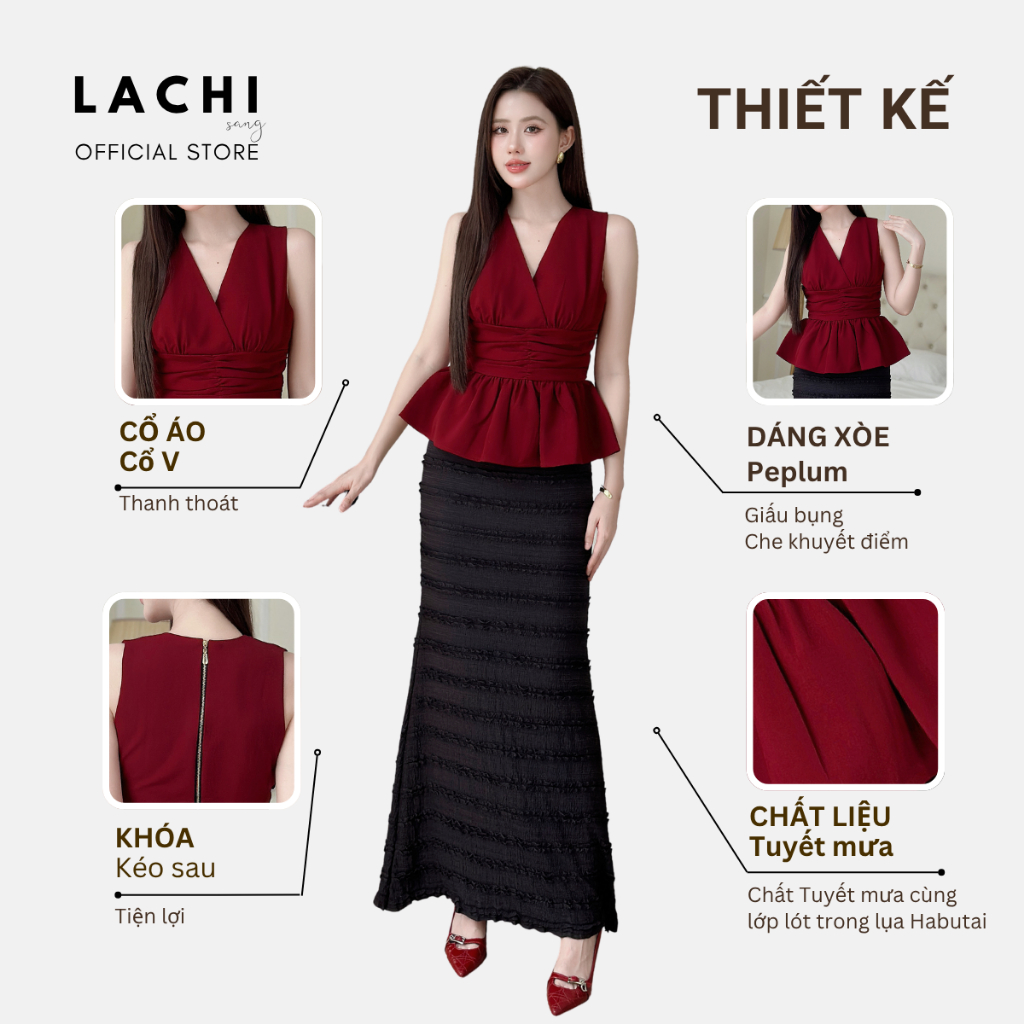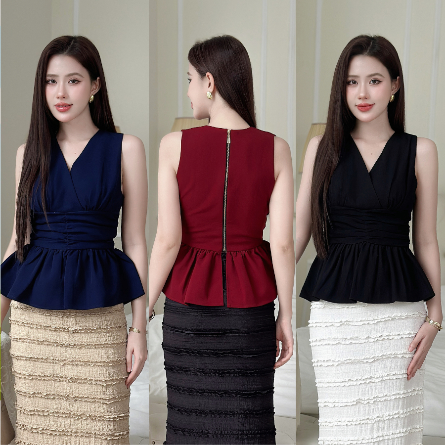 Áo gile sát nách Peplum công sở LACHI kiểu cổ V nhún eo giấu bụng 2 lớp khóa sau cho nữ LC-SM46