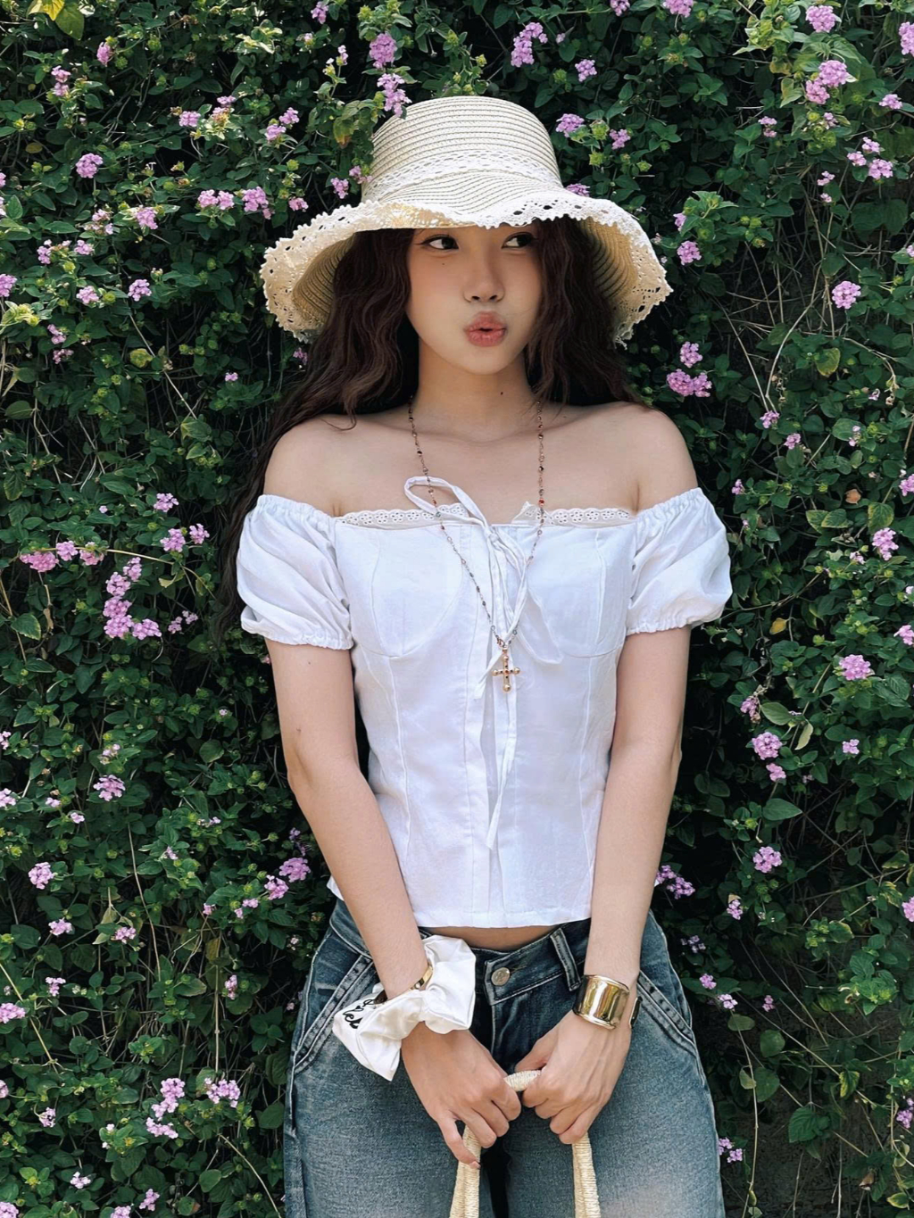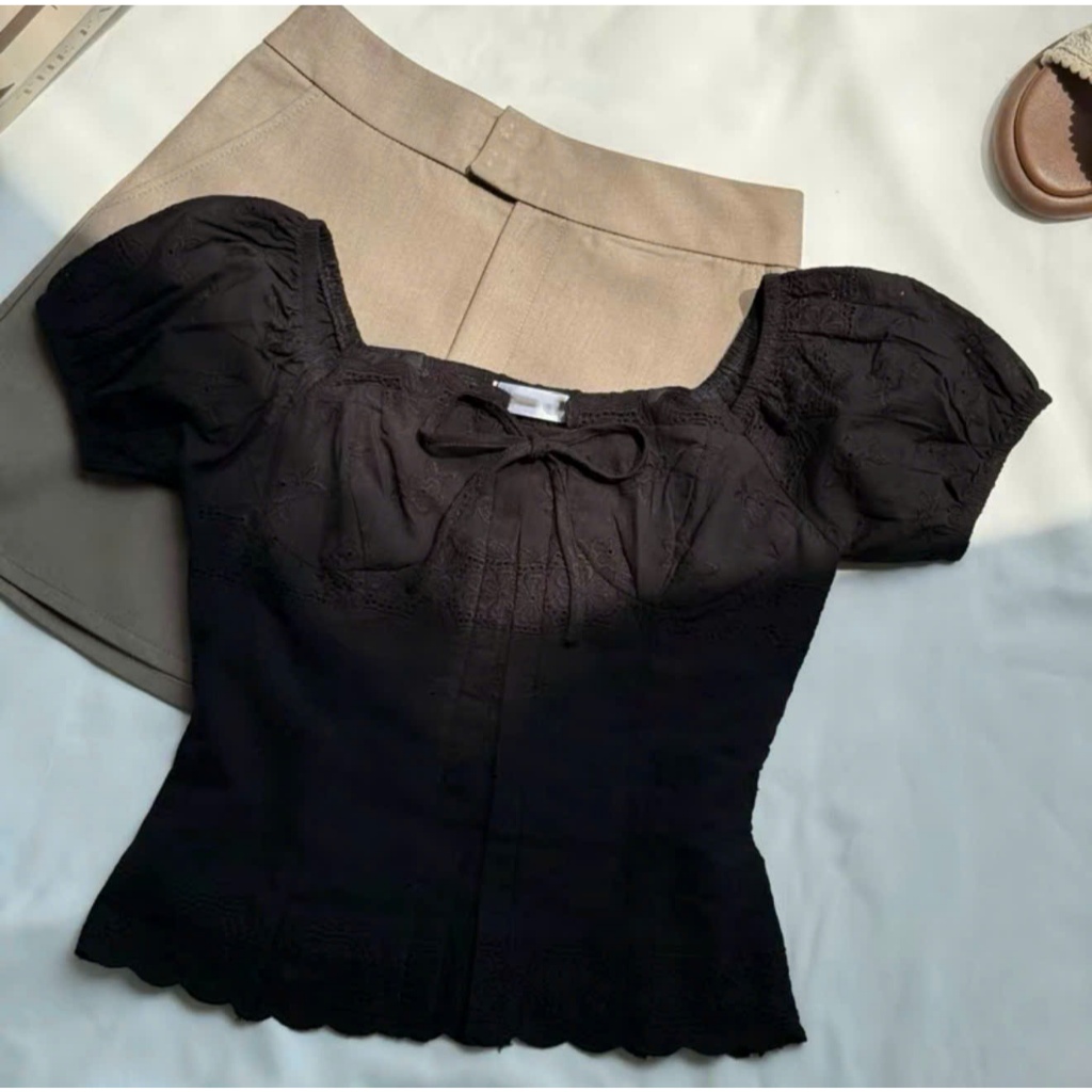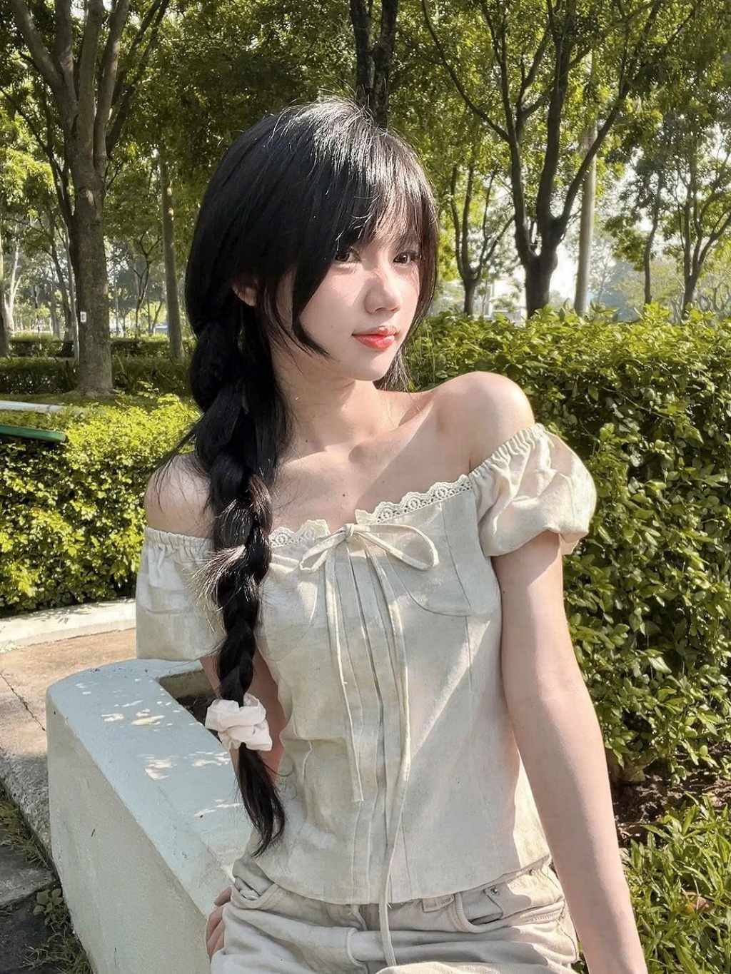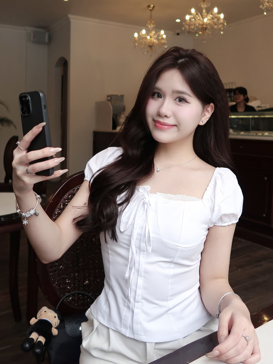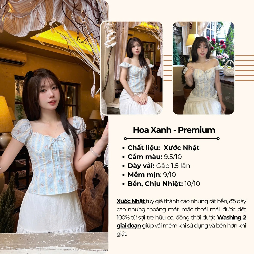 Áo babydoll nữ kiểu Linen tay phồng nơ ngực công chúa phong cách Kimee Ma380