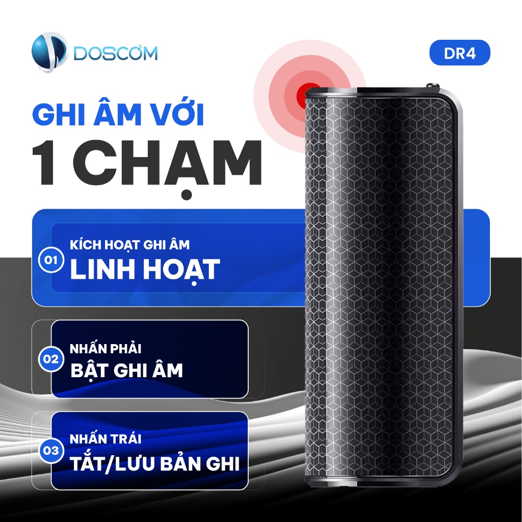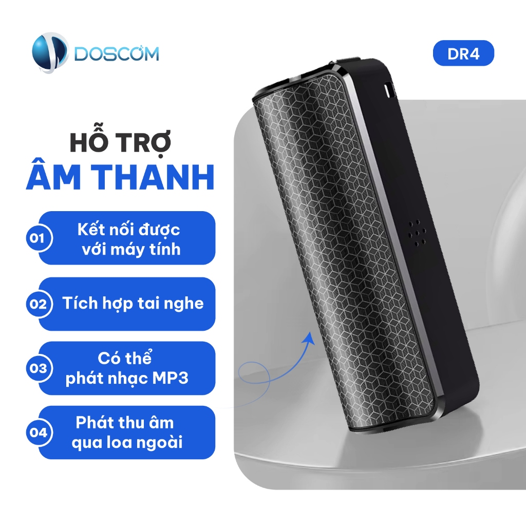 Máy Ghi Âm DOSCOM DR4 Mini, Pin 500 Giờ, Có Nam Châm, Lọc Ồn, Bộ Nhớ 8GB, Ghi Âm Liên Tục 500 Giờ