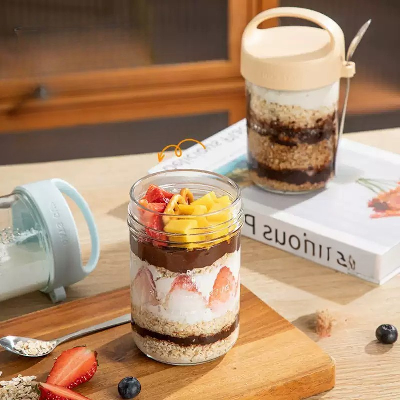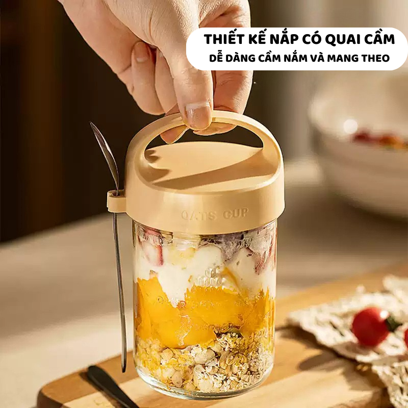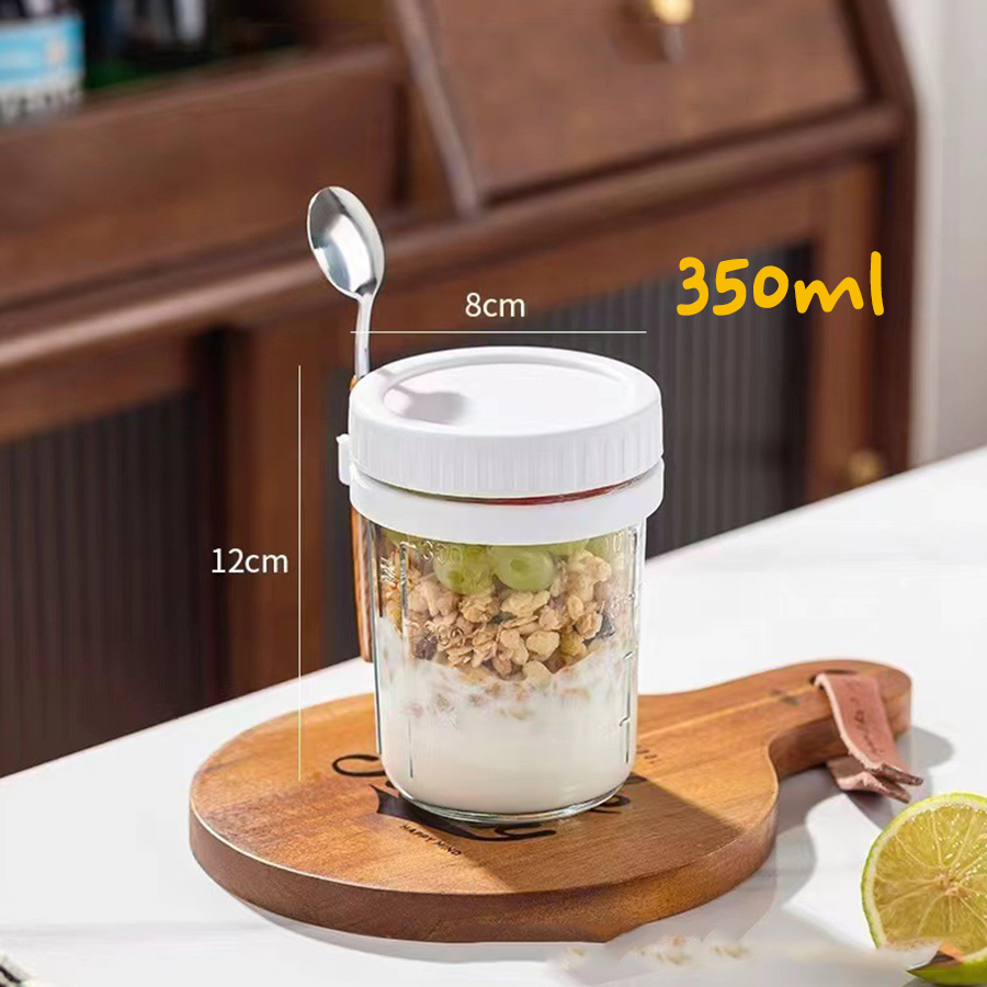 Cốc Đựng Yến Mạch, Hũ Đựng Ngũ Cốc, Bình Thủy Tinh Có Nắp Kèm Thìa Lo008