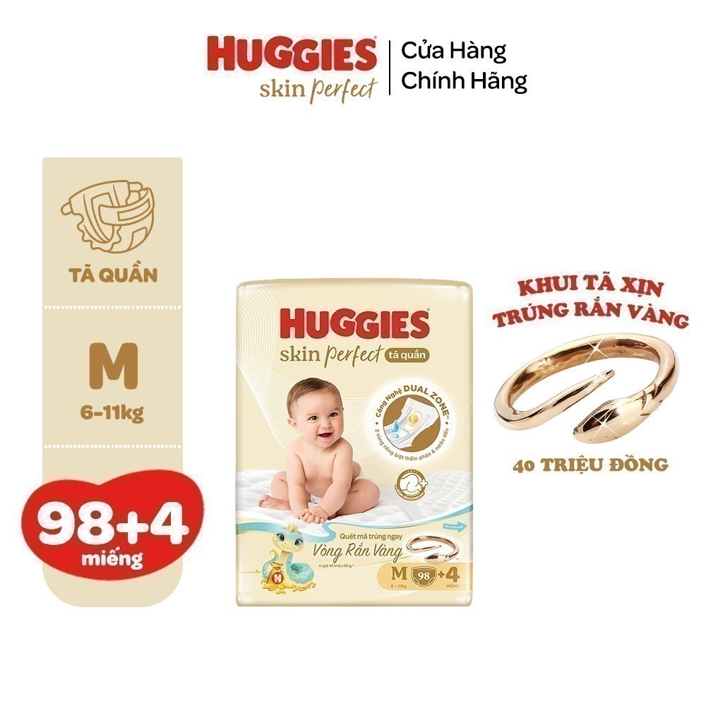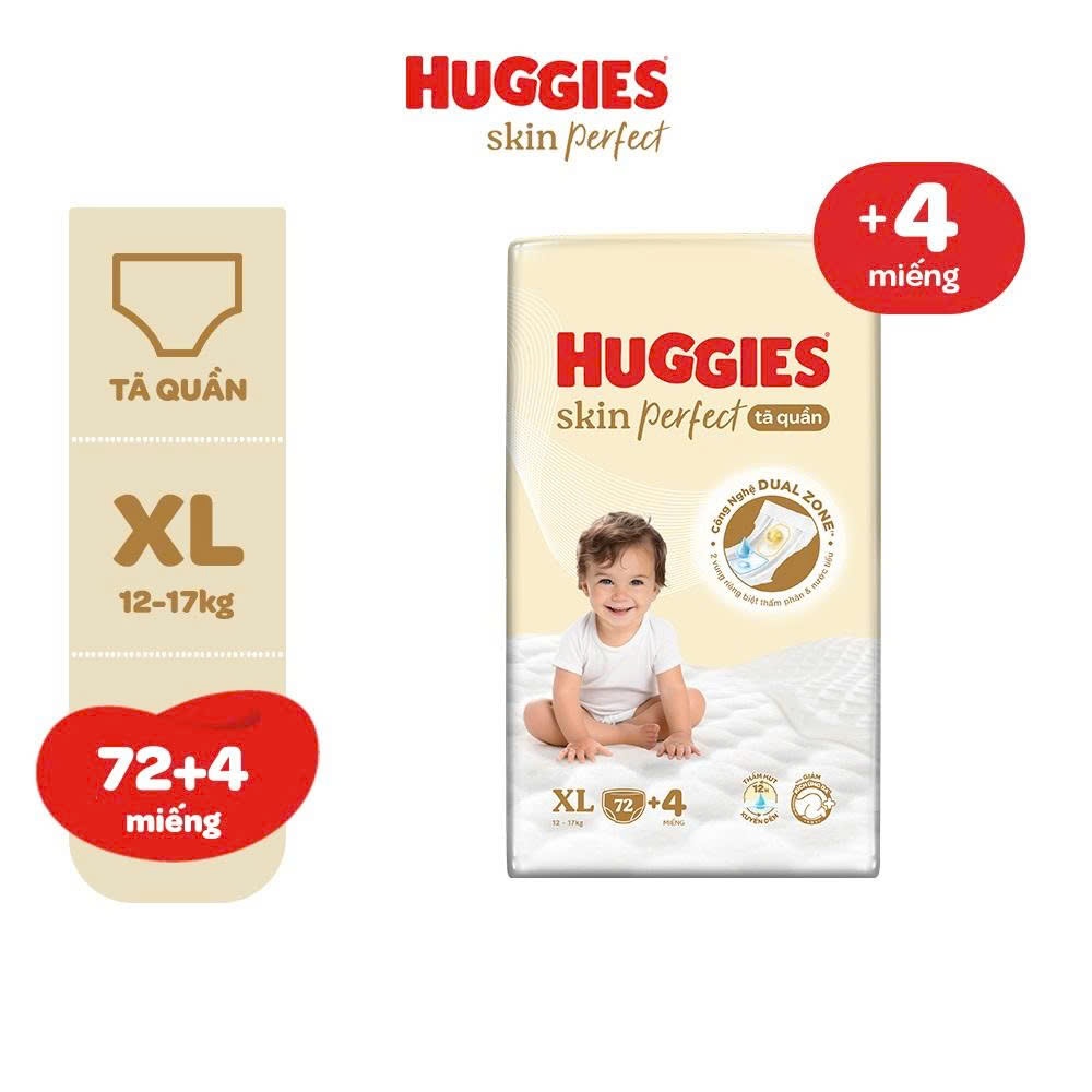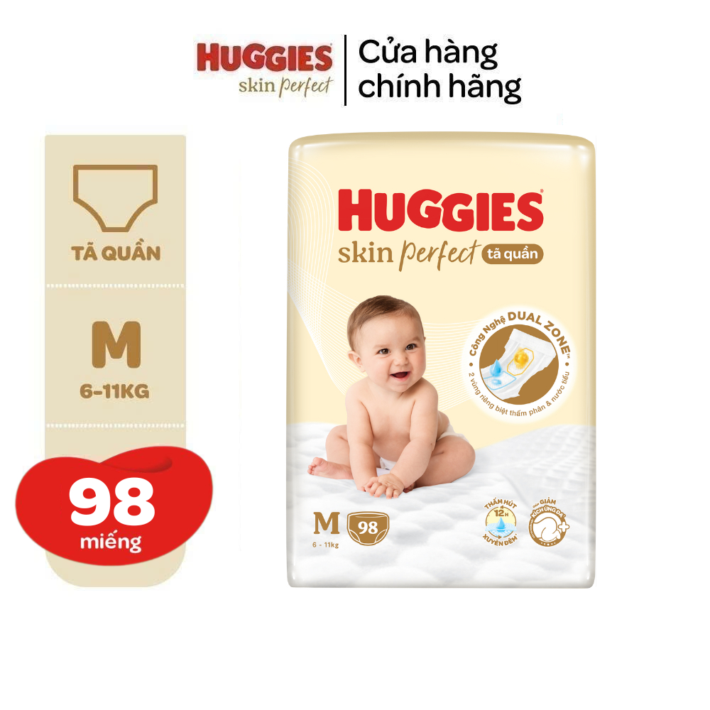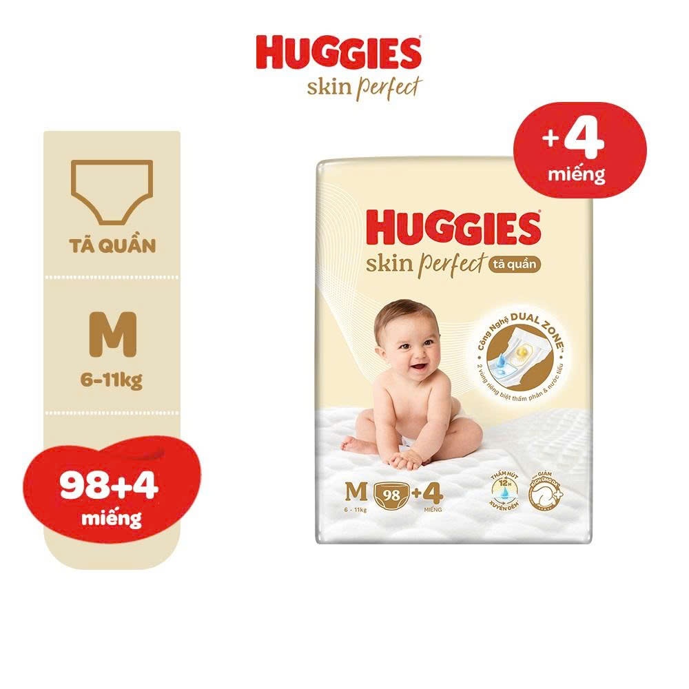 Tã quần Huggies Skin Perfect Mega Jumbo cỡ M/L/XL/XXL với 2 vùng thấm giảm kích ứng da