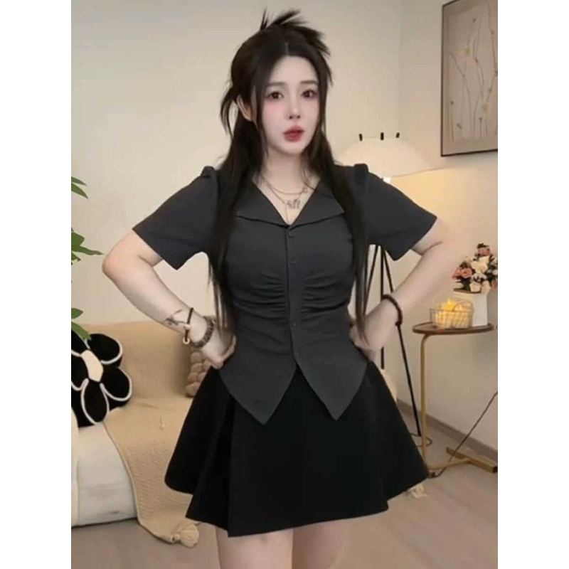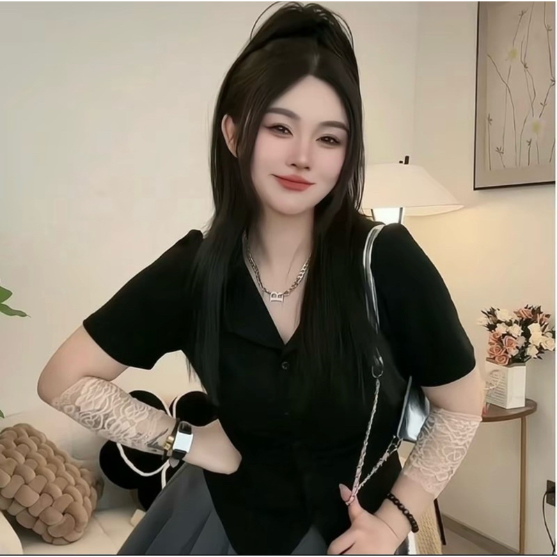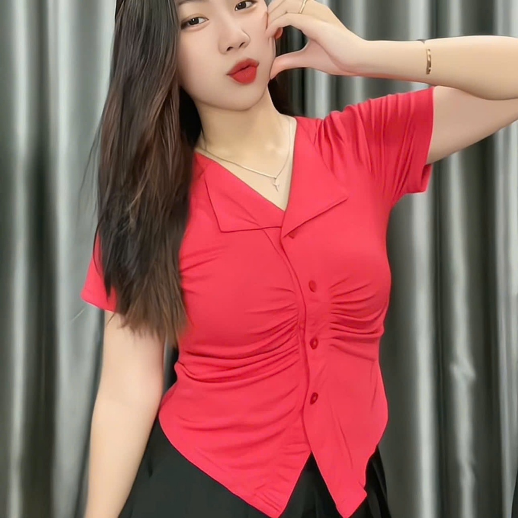 Áo Thun Kiểu Cổ V Tay Ngắn Thiết Kế Che Khuyết Điểm Cho Nàng Chubby-Shop bigsize lazy