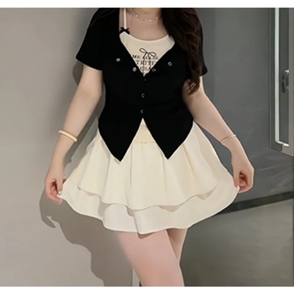 Áo Thun Tay Ngắn Giả Hai Lớp Dáng Ôm Ngắn Phong Cách Hàn Quốc Thời Trang Mùa Hè Dành Cho Bạn Nữ