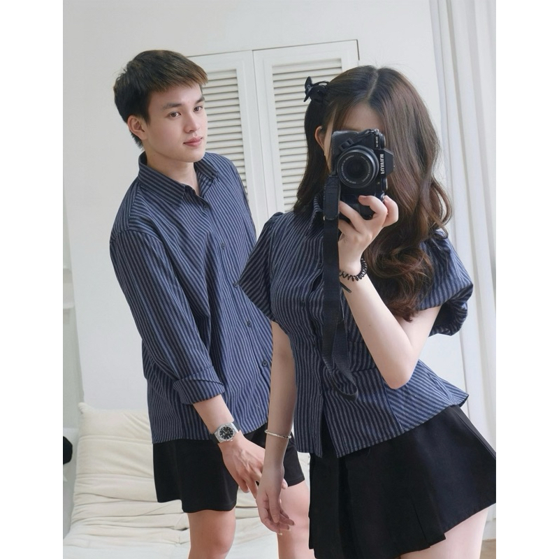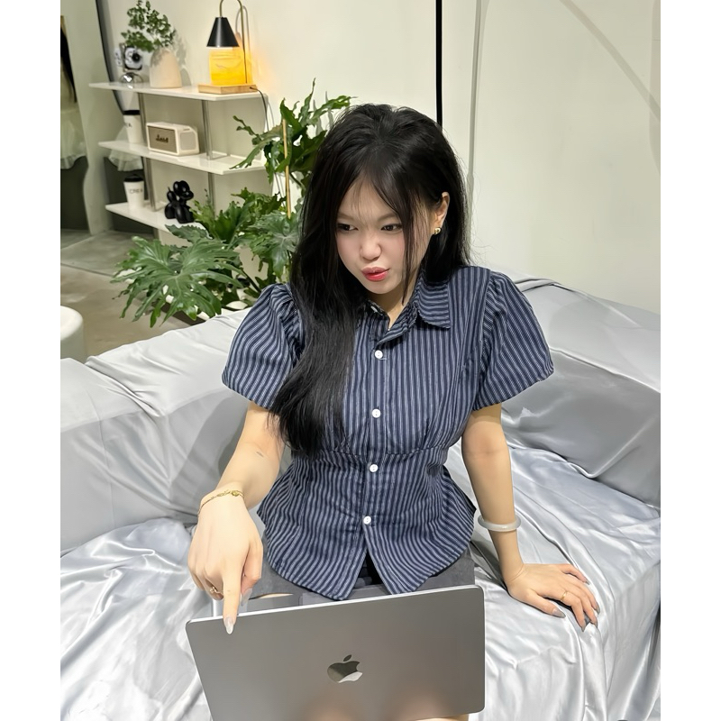 Áo sơ mi kẻ sọc tay bồng A4 chiết eo dễ phối đồ hàng loại 1_Lazy có bigsize