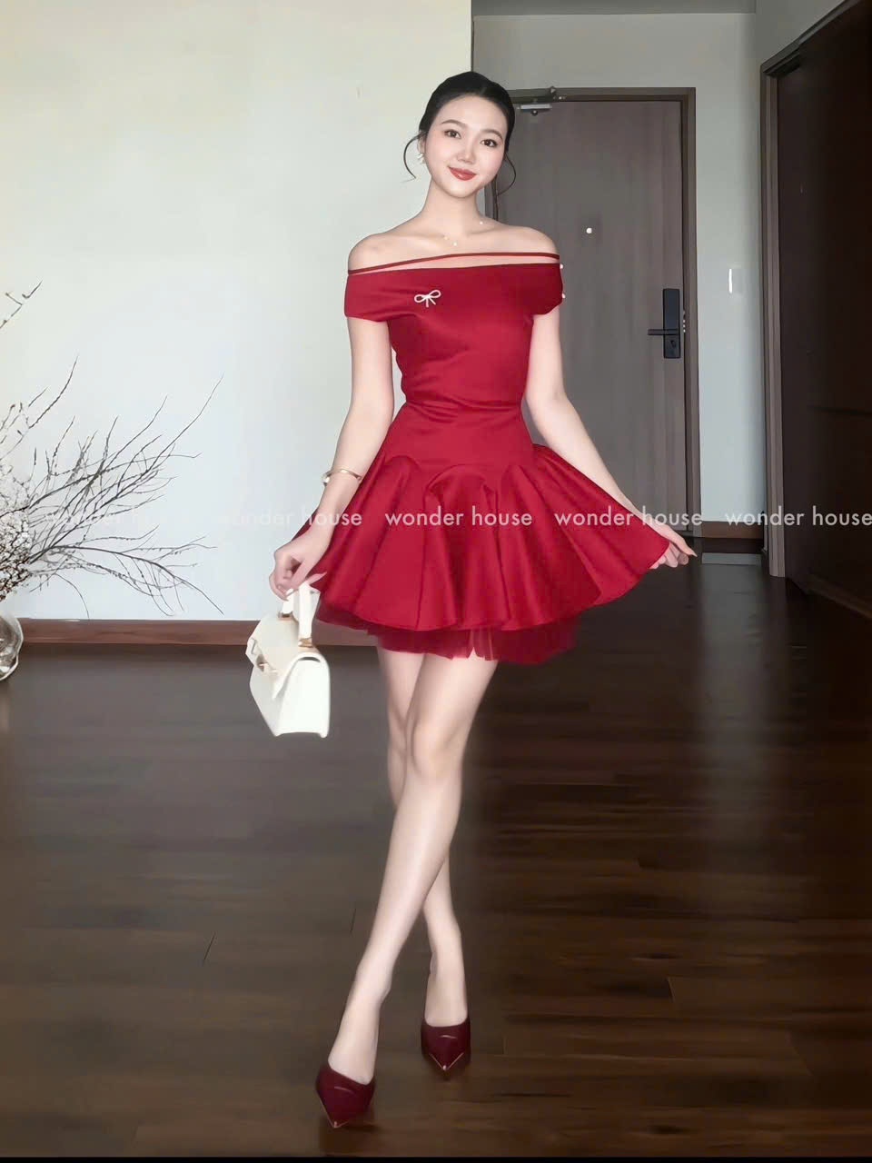 Lani Dress Wonderhouse Đầm thiết kế trễ vai dáng xòe công chúa chất vải dày dặn dự tiệc sang trong, nữ tính
