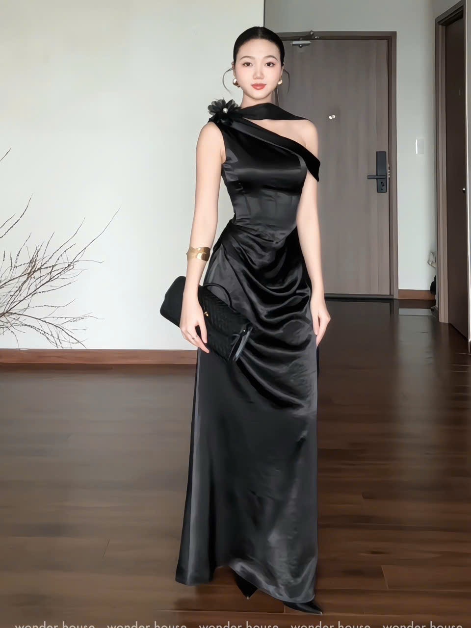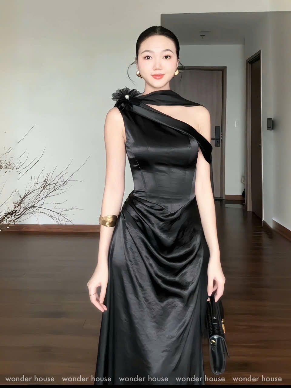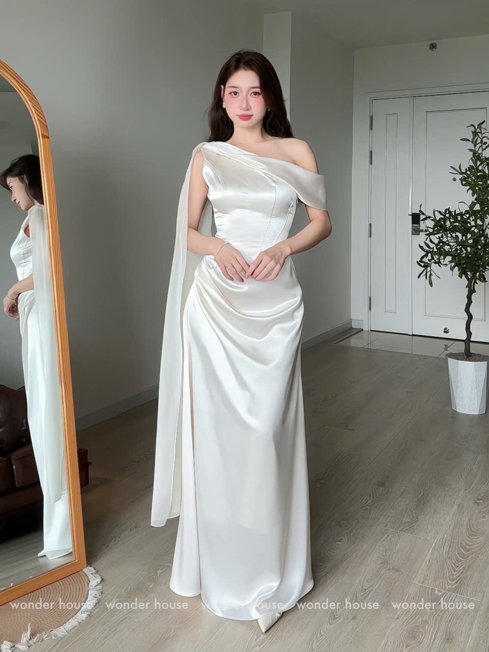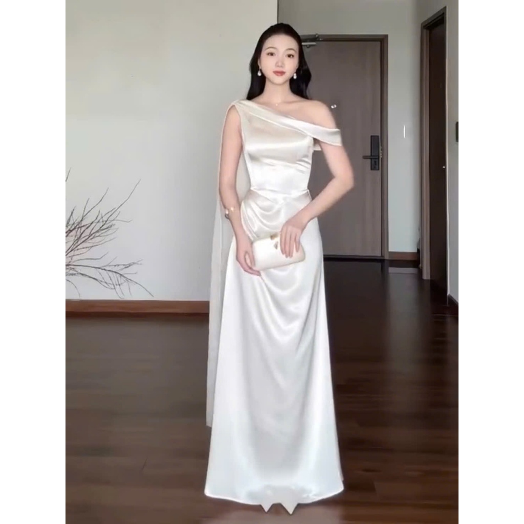 Missi Dress Wonderhouse Đầm xéo vai chất lụa mịn dáng dài sang trọng, dự tiệc