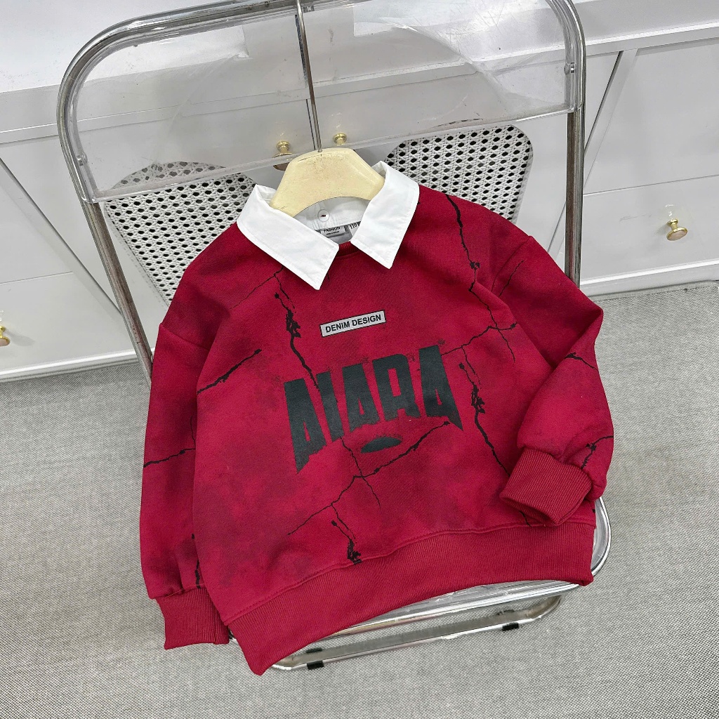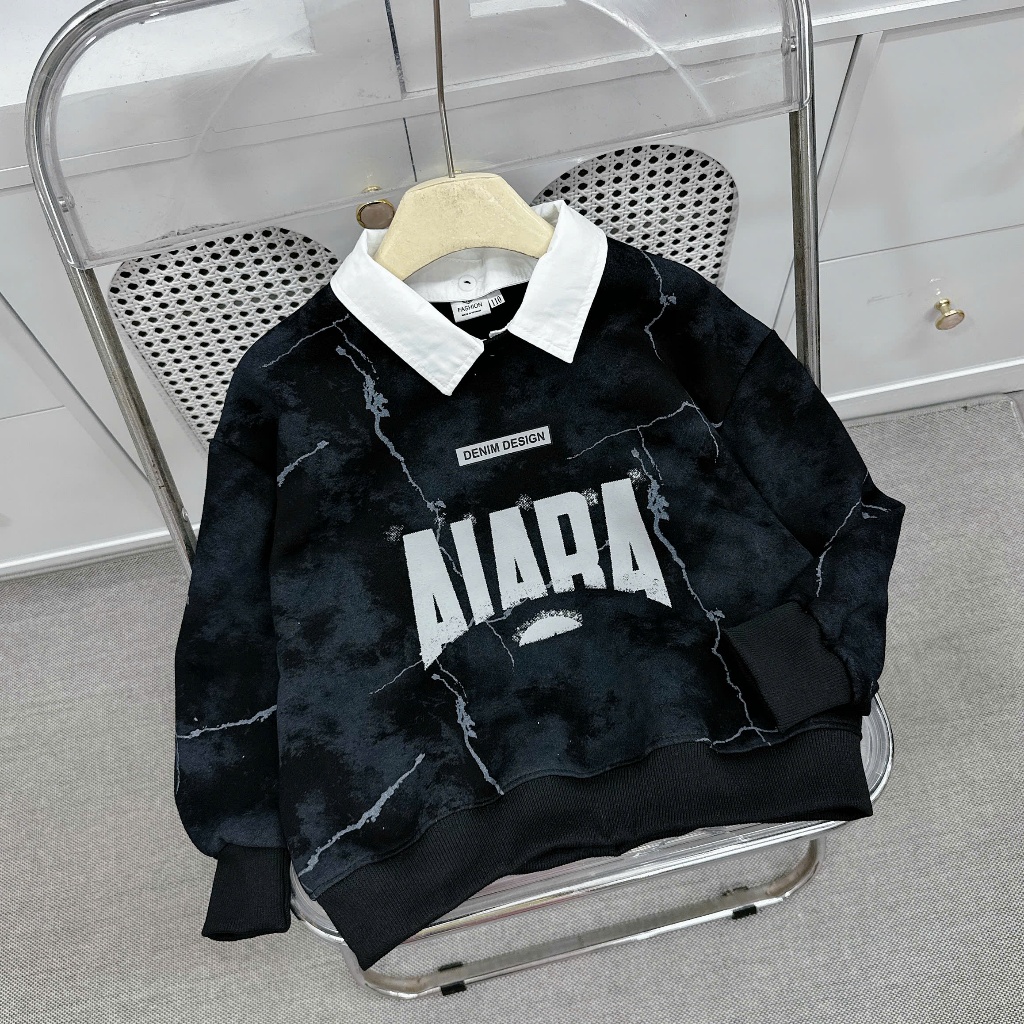 Áo Nỉ 2 Da Cao Cấp Cho Bé Trai Phối Cổ Sơ Mi Tháo Rời, Mặc 2 phong cách, Chất Liệu Mềm Mịn Giữ Ấm, Đủ size từ 20-60kg