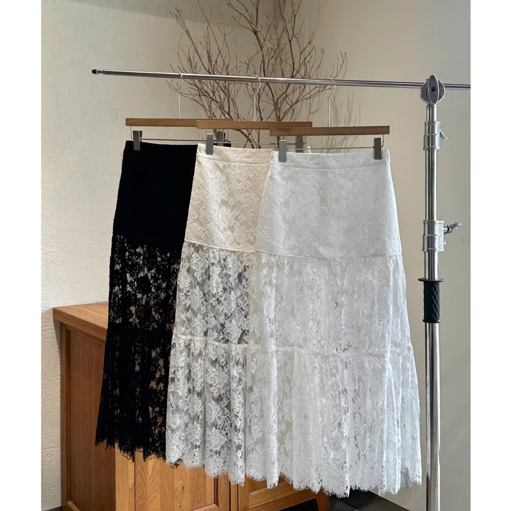 Chân váy midi ren 3 tầng mặc đi biển phong cách mùa hè - Vintagevibes.