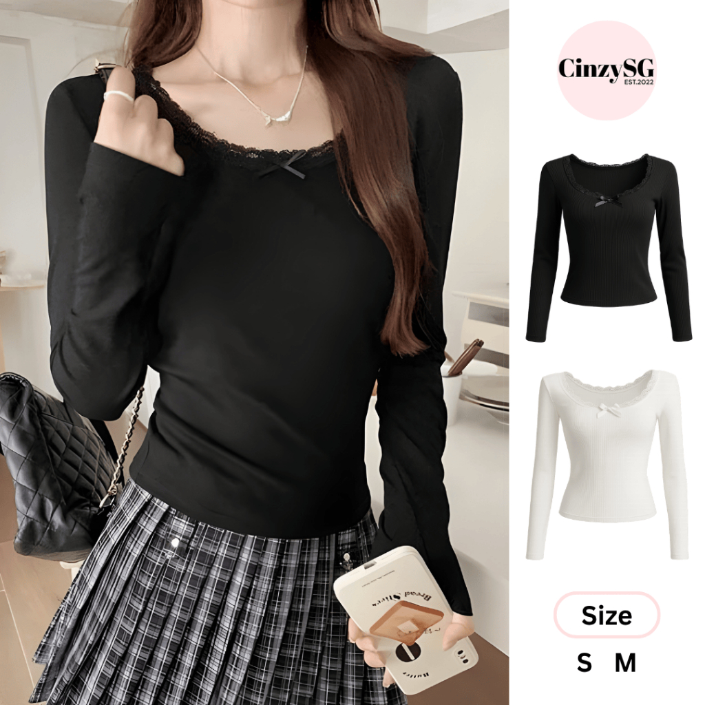 Áo Len Nữ Tay Dài Viền Ren Đính Nơ Dáng Ôm Tôn Dáng Basic Dễ Thương TD01 CinZy SG