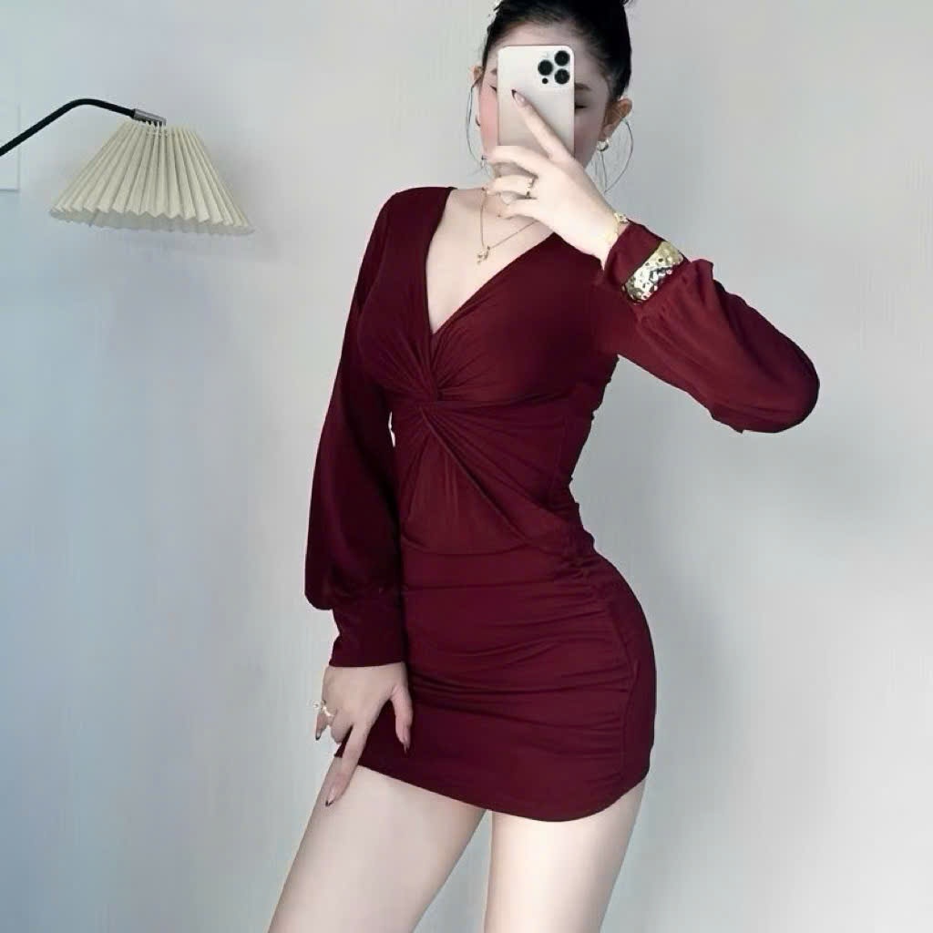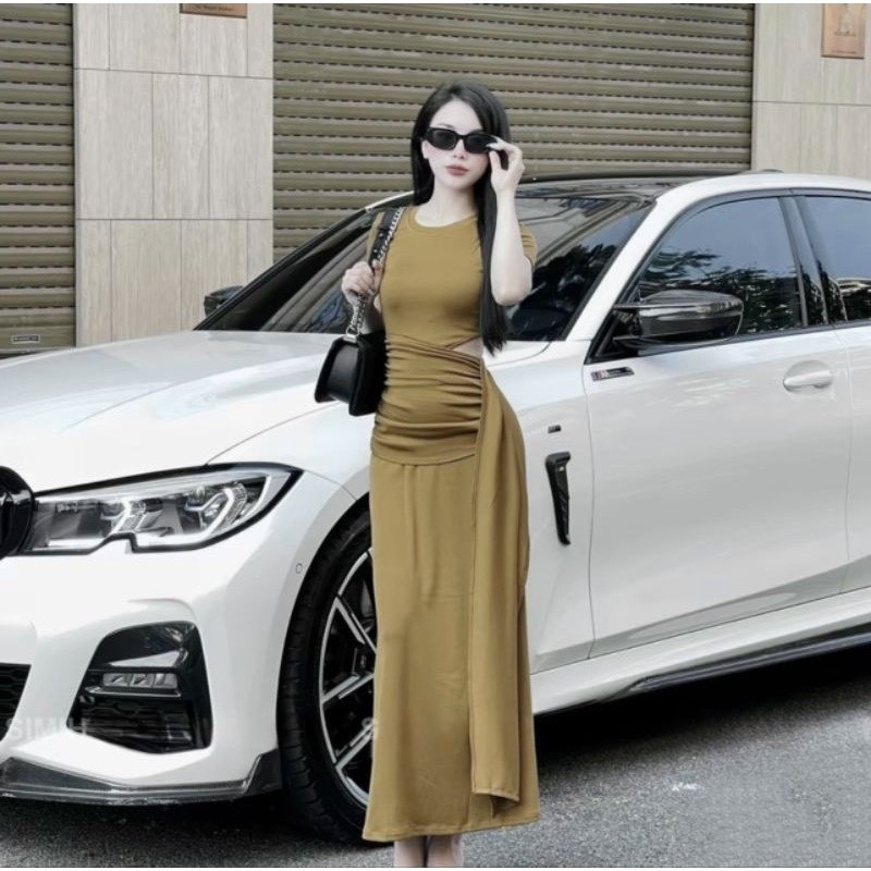 Váy Body Nữ Khoét Ngực Dáng Dài KANOMY D240, Đầm Body Nữ Tay Ngắn Thời Trang Sang Chảnh Vải Cao Cấp