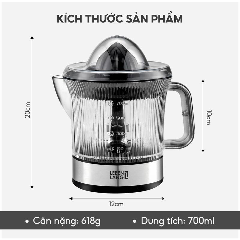 Máy Vắt Cam Tự Động Lelenlang LB3899 700ml Vân Kẻ Nổi, Công Suất 40W, Bảo Hành 2 Năm