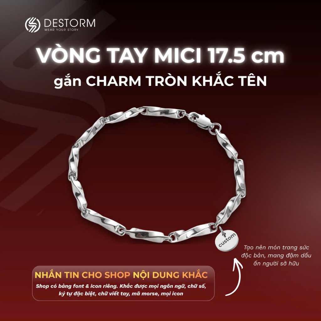 Vòng tay nam/nữ Destorm Mici, Vòng tay đôi - Phụ kiện thời trang Unisex Thép không gỉ, Có hộp quà tặng và túi đựng