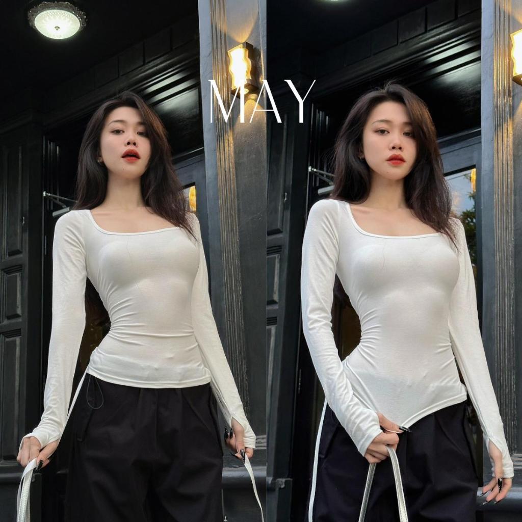 A16 - Áo Tay Dài Cổ U Ôm Fit Body Vải Dệt Kim Mỏng Tôn Dáng Nữ Mùa Hè