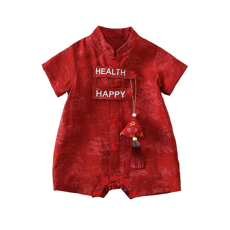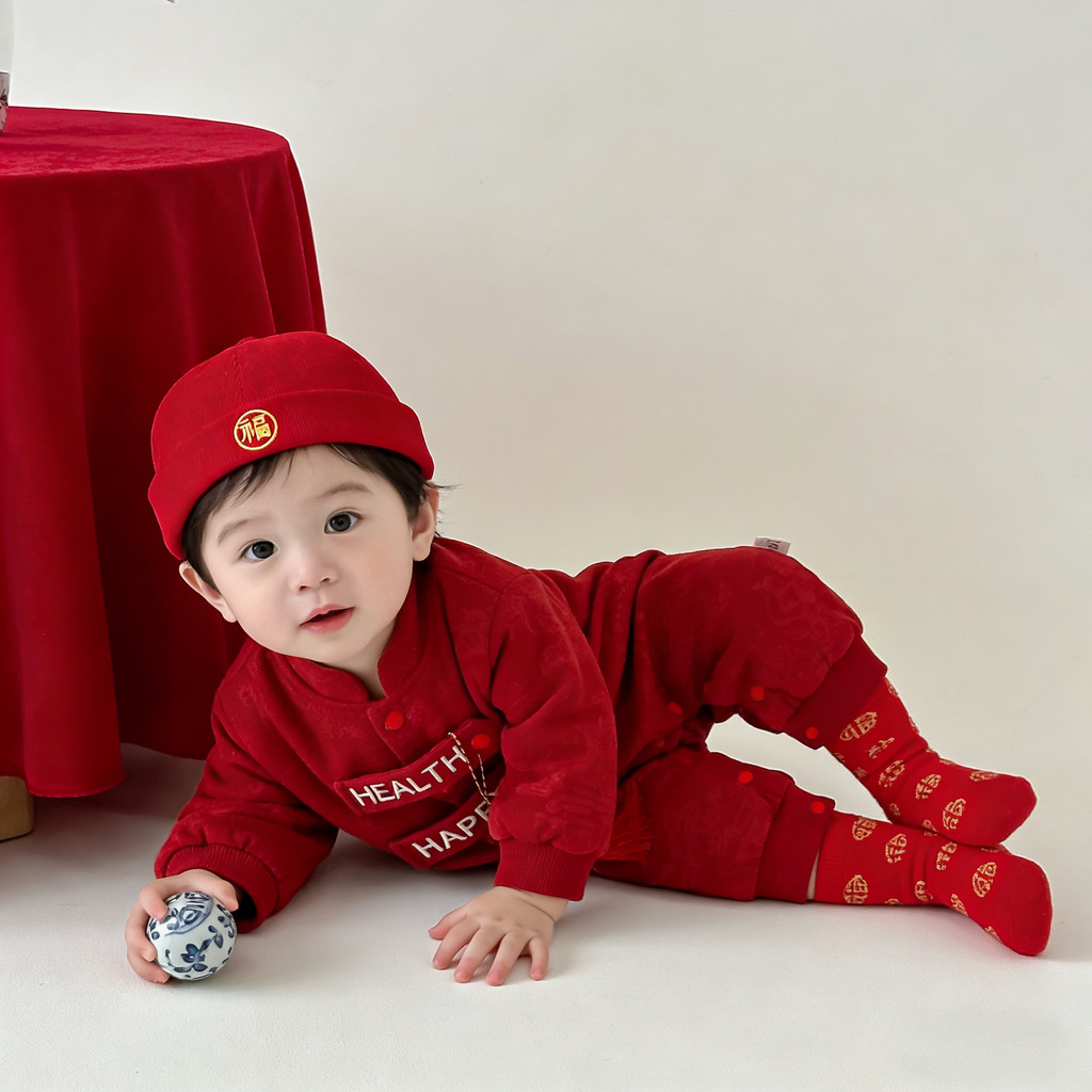 Bộ đồ liền thân bé trai và bé gái chất lượng cao 0-28 tháng Lễ hội mùa xuân Phong cách Trung Quốc mới Quần áo trẻ em màu đỏ Trang phục Christing