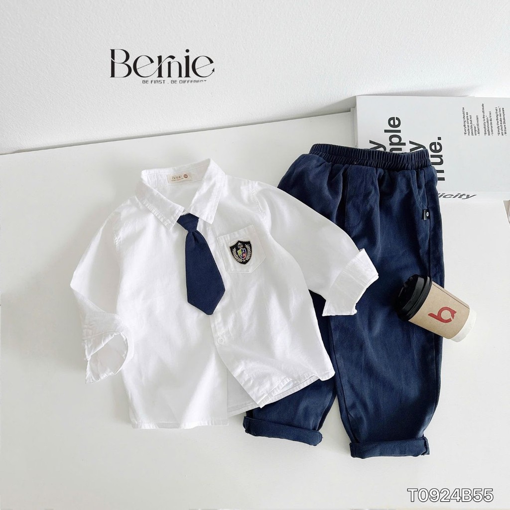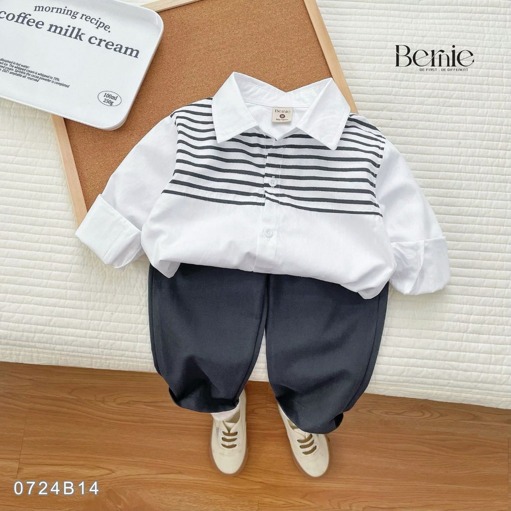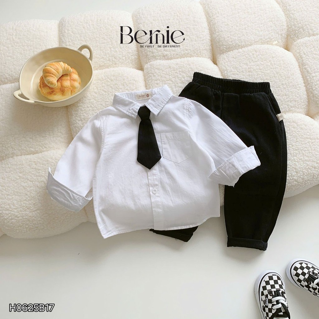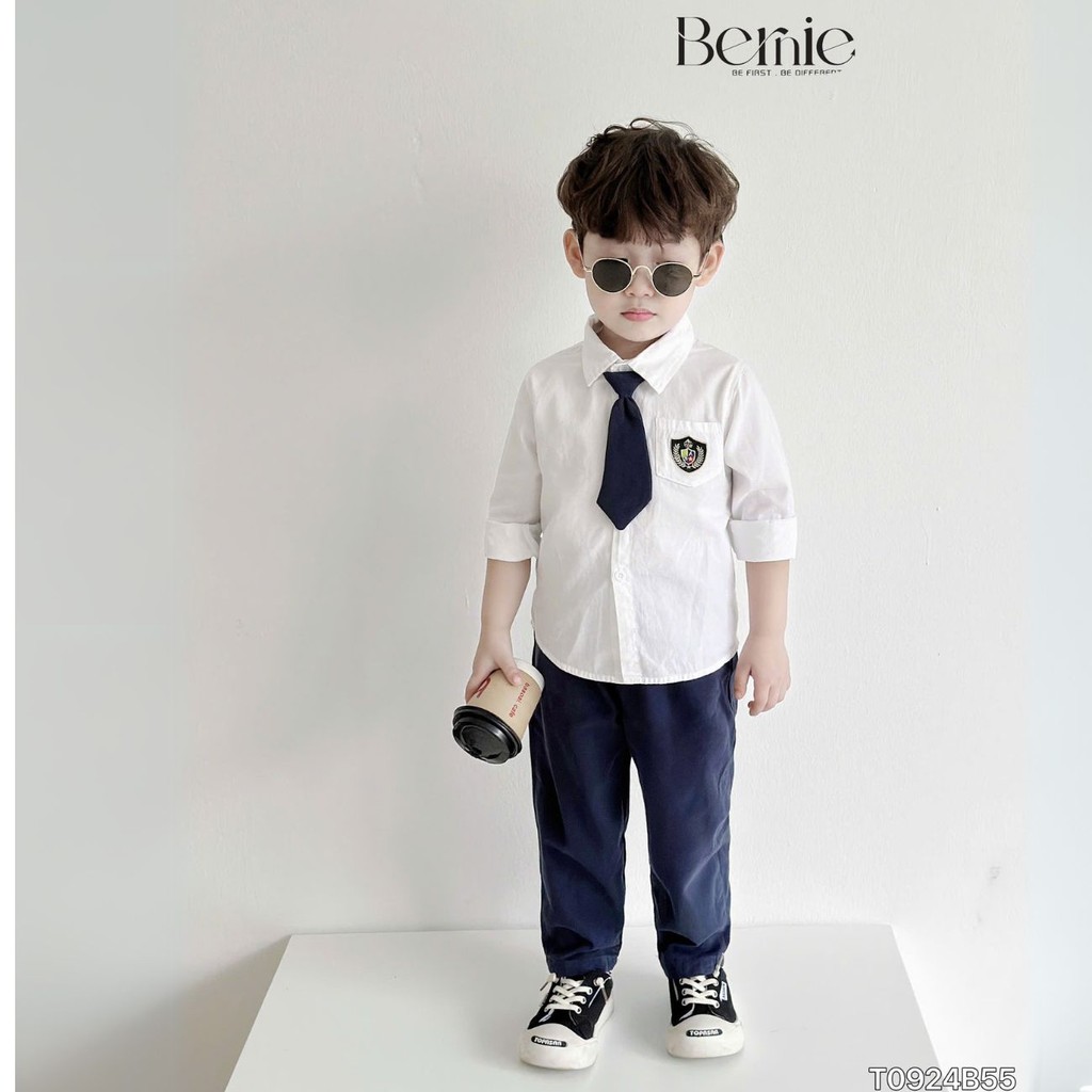Set sơ mi dài tay quần dài tổng hợp nhiều mẫu cho bé trai mặc đi tiệc đi học 1 đến 7 tuổi BERNIE