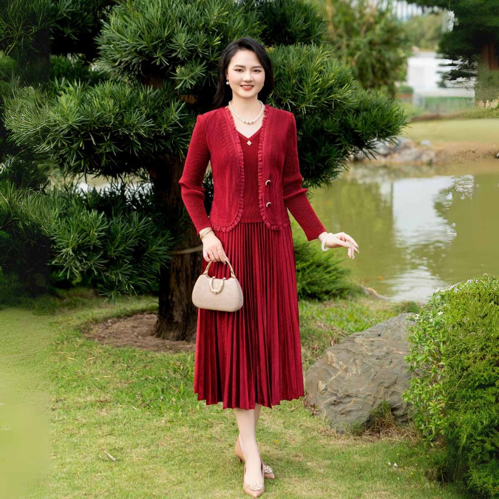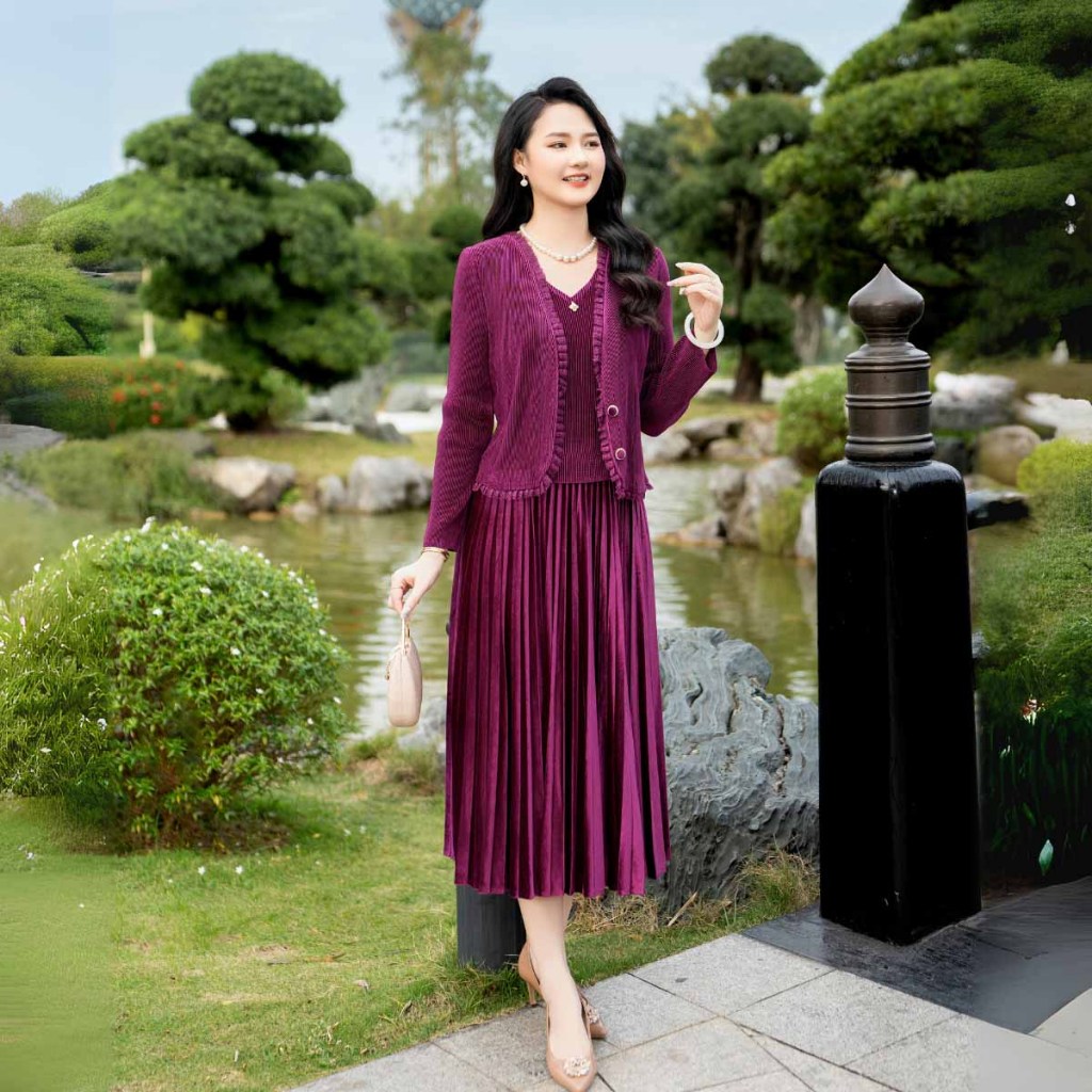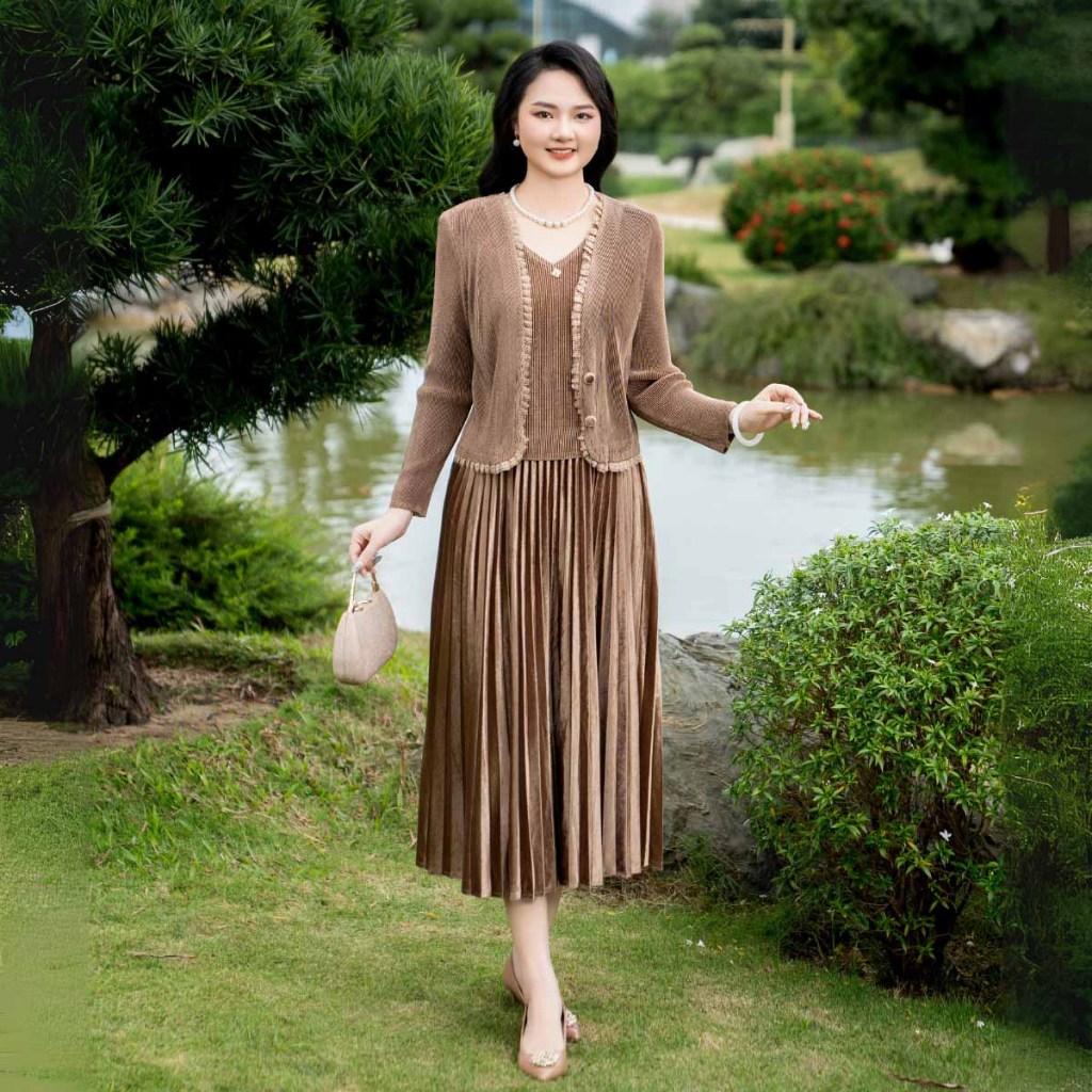 Đầm trung niên nữ free size tặng mẹ LYBEE VN051 chất nhung dập ly cao cấp co giãn thoải mái