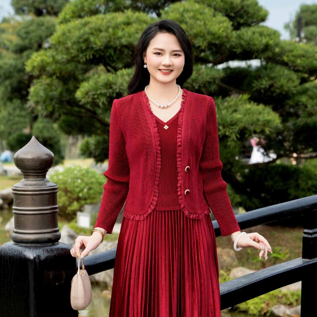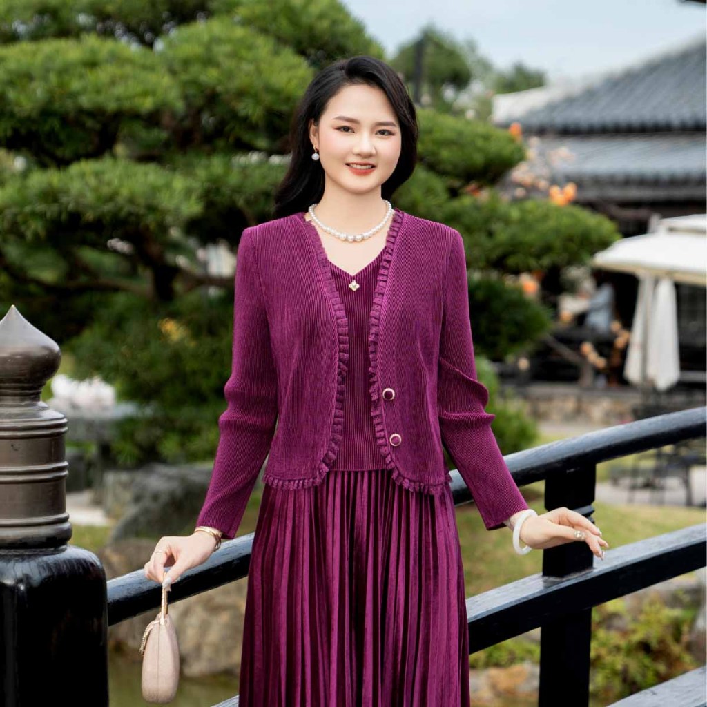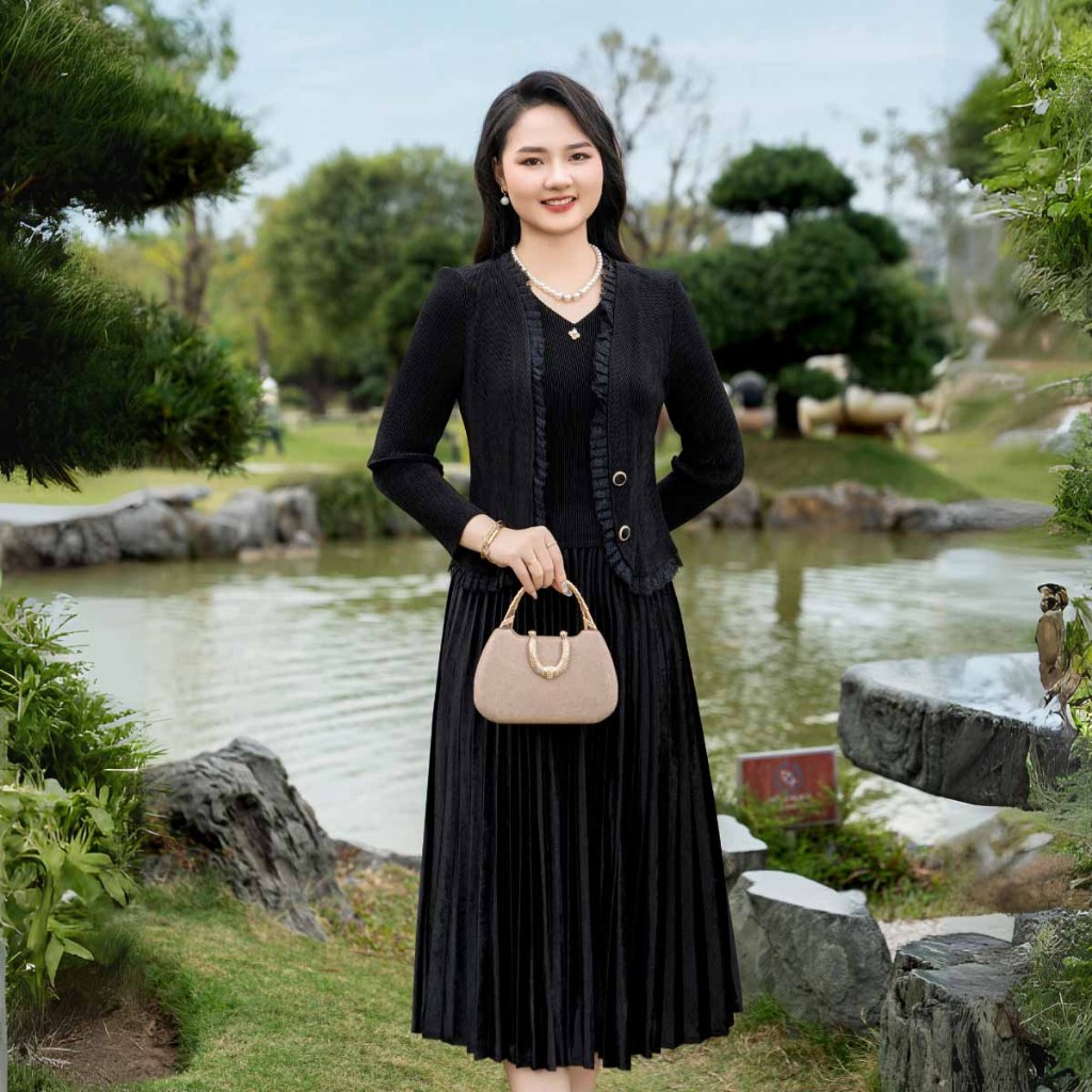 Đầm trung niên nữ free size tặng mẹ LYBEE VN051 chất nhung dập ly cao cấp co giãn thoải mái