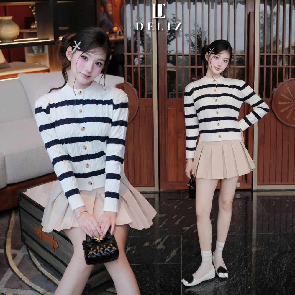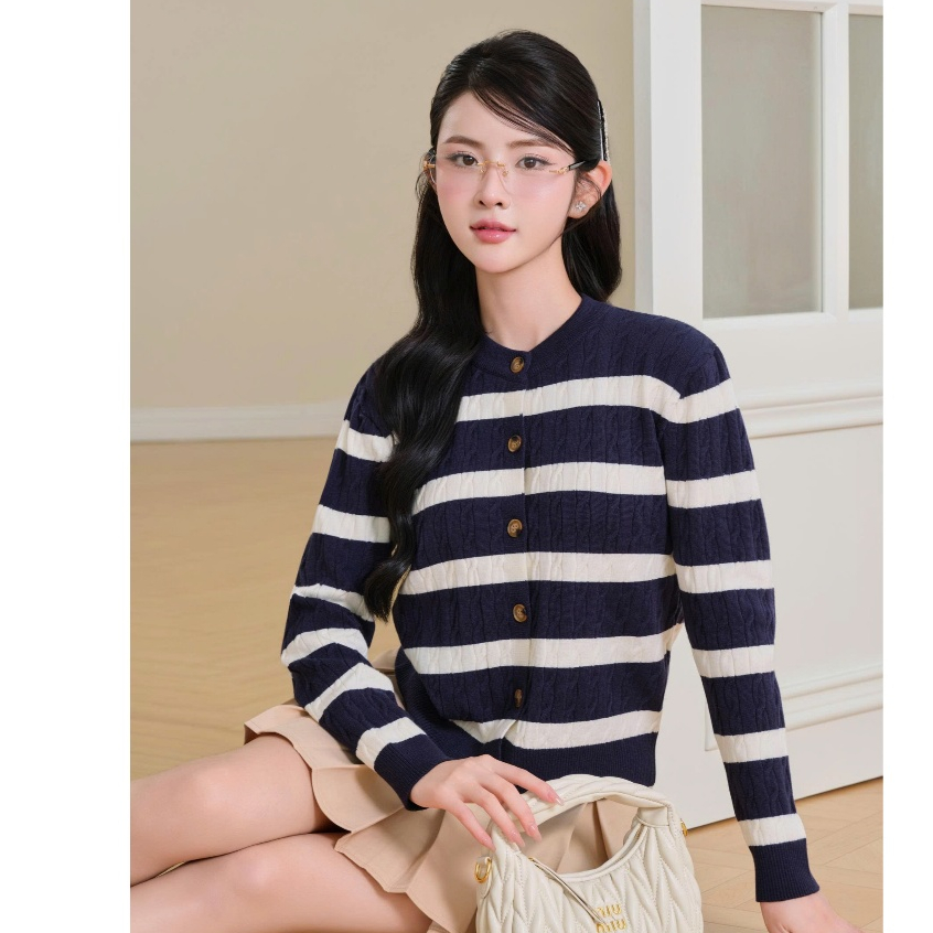 Áo len cardigan khoác ngoài cho nữ mùa thu đông cổ tròn dài tay len lông thỏ vặn thừng cao cấp CD849 500G
