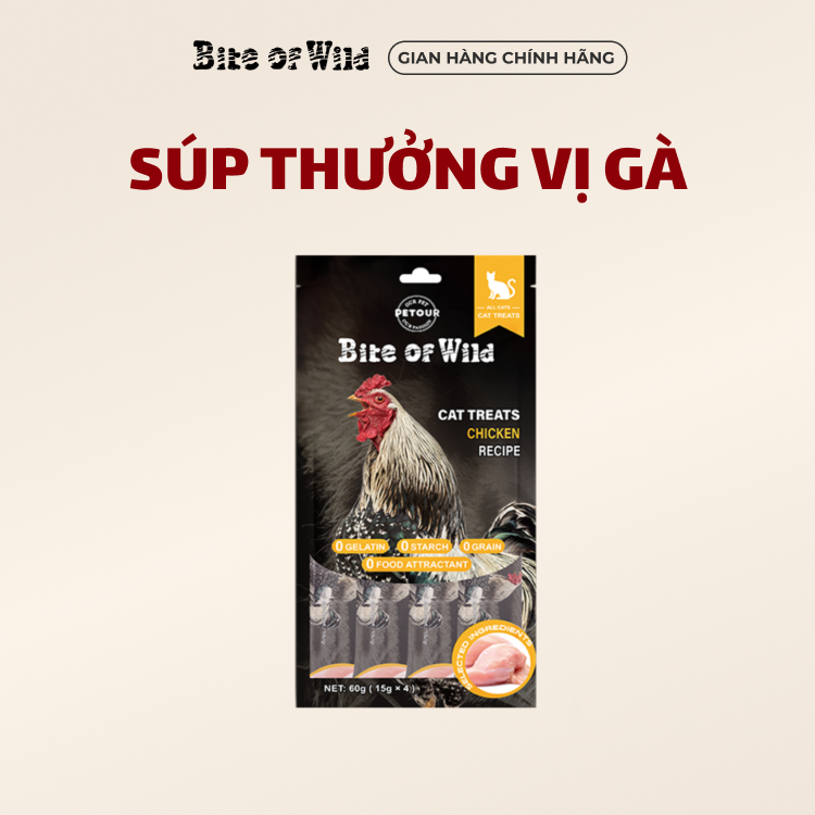 Súp thưởng cho mèo Bite Of Wild gói 60g (4 thanh 15g) hương vị gà và cá hồi
