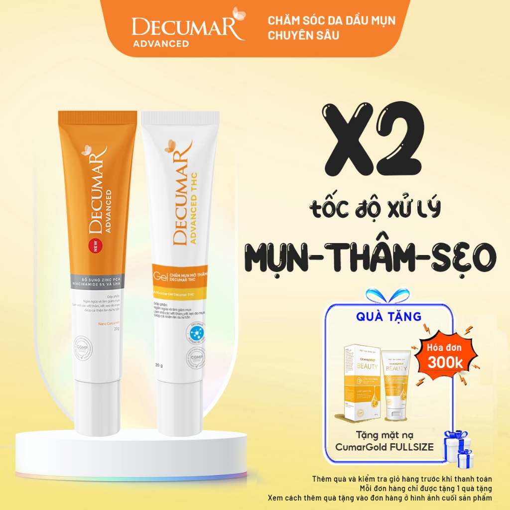 Set 2 gel bôi chấm mụn ngày - đêm Decumar 20gr hỗ trợ giảm mụn, mờ thâm sẹo do mụn - THC03, DCA01