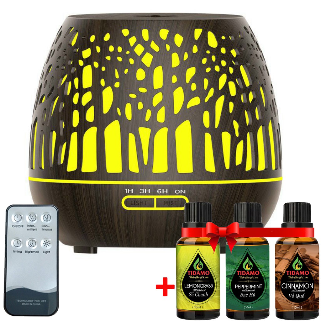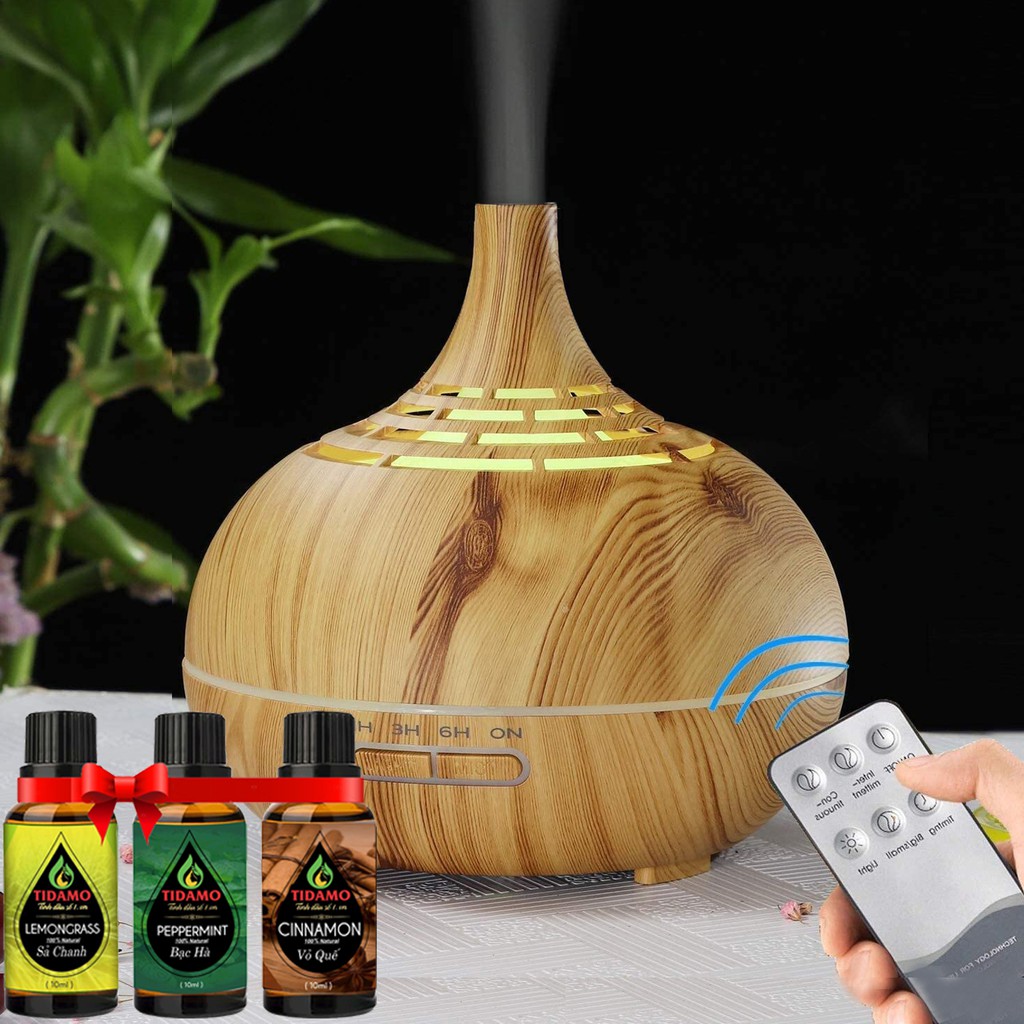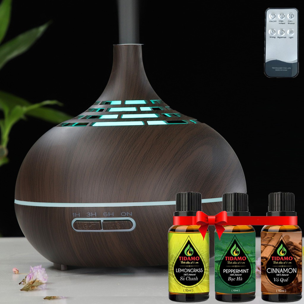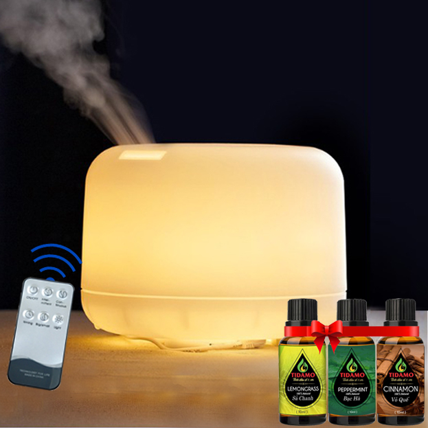 Combo Máy Xông Tinh Dầu Cách Điệu Có Điều Khiển Từ Xa + Tinh Dầu Nguyên Chất TIDAMO Tự Chọn - Máy Khuếch Tán Tinh Dầu