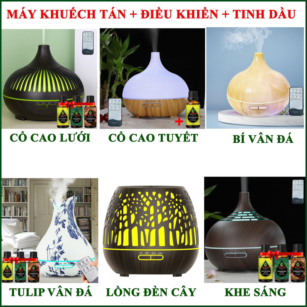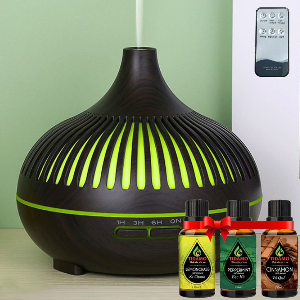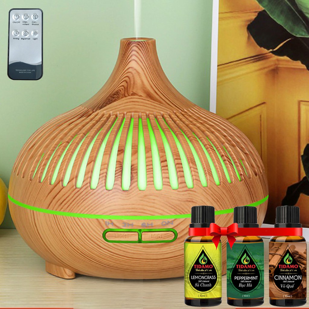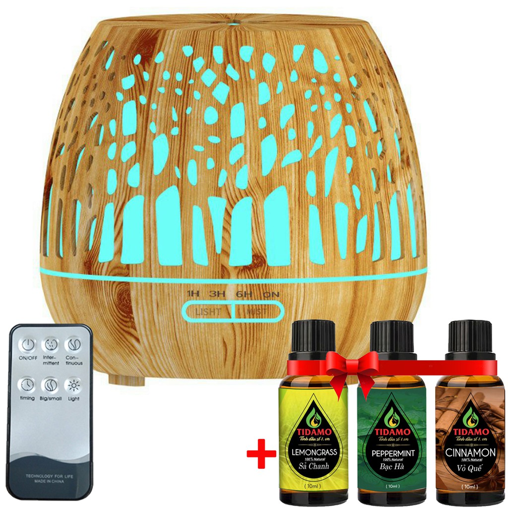Combo Máy Xông Tinh Dầu Cách Điệu Có Điều Khiển Từ Xa + Tinh Dầu Nguyên Chất TIDAMO Tự Chọn - Máy Khuếch Tán Tinh Dầu