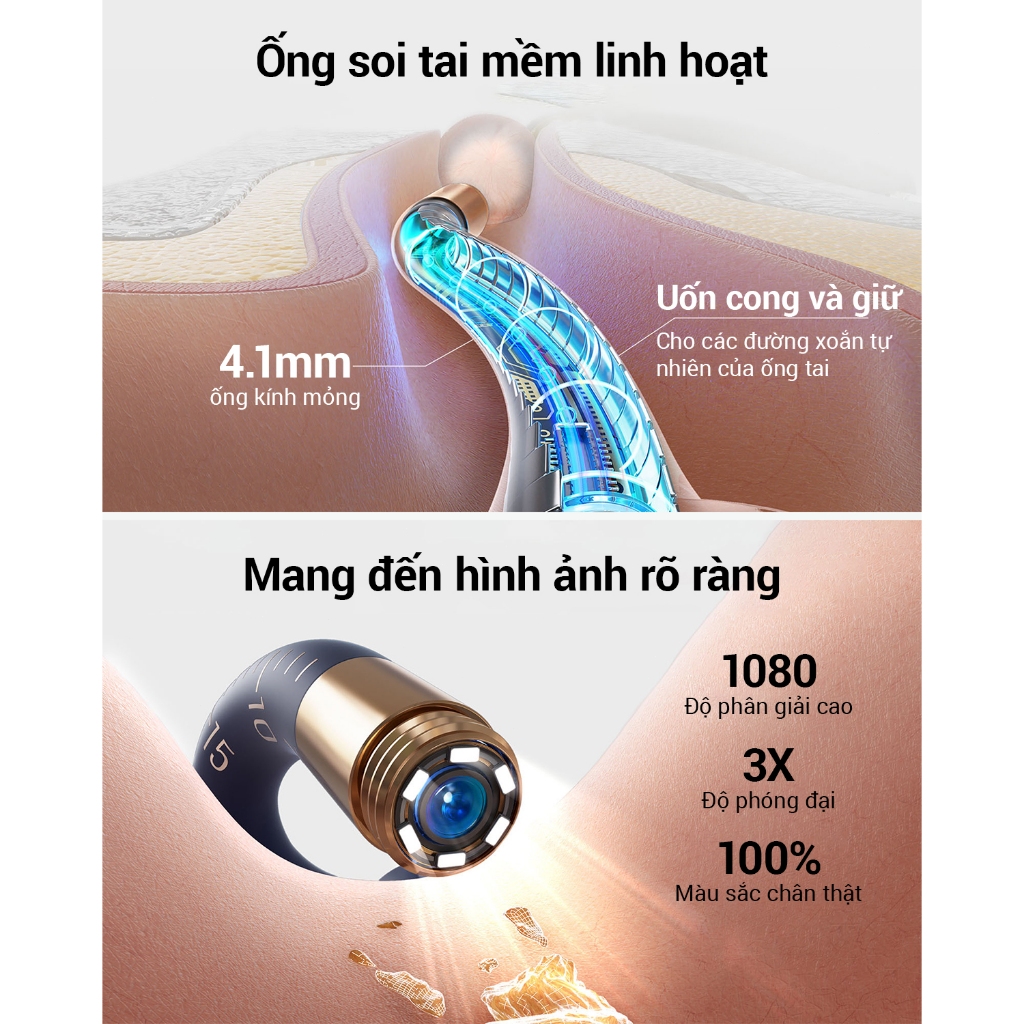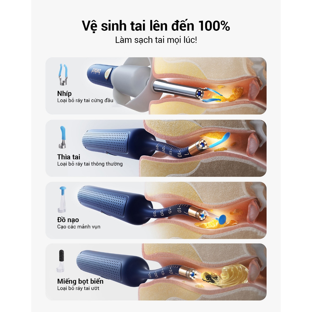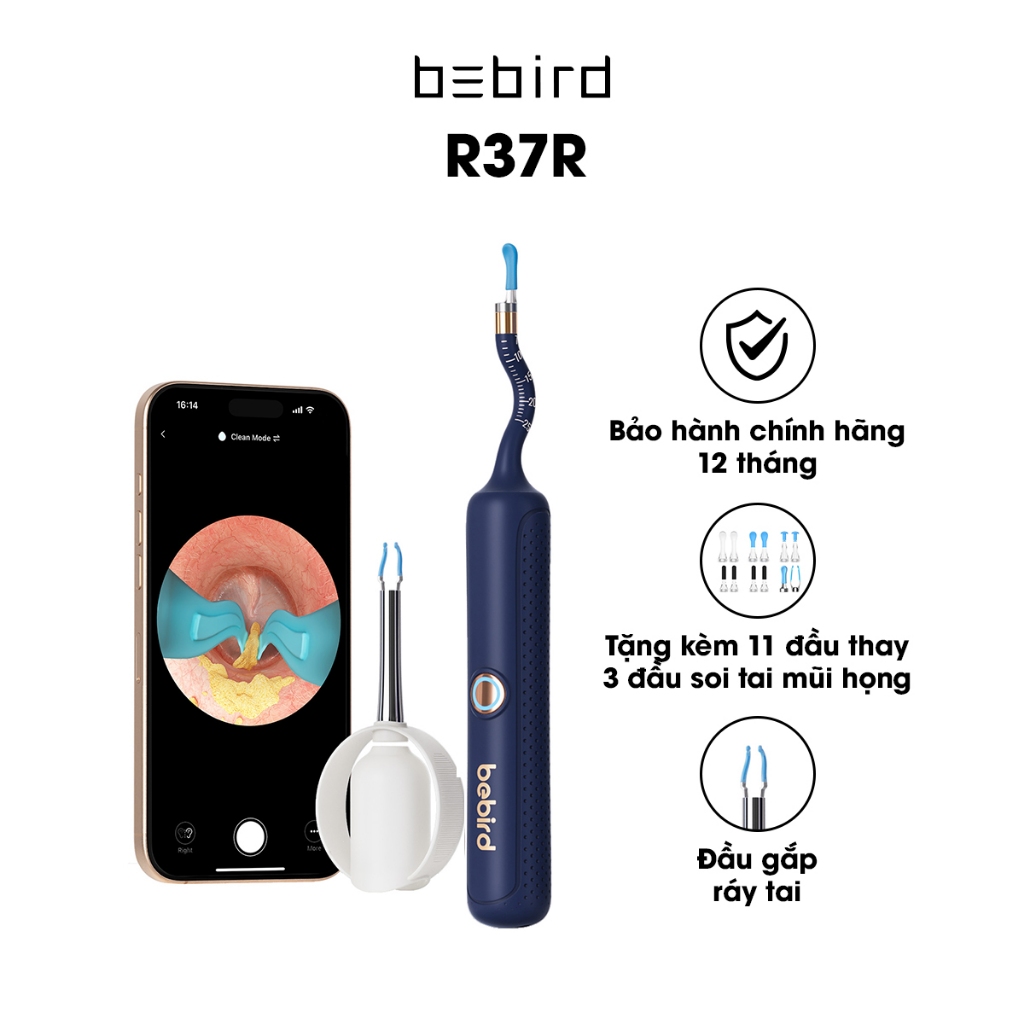 【MÀU XANH DƯƠNG】Ráy Tai Camera Bebird R37R Soi Tai Mũi Họng Đầu Soi Uốn Cong - Hàng Chính Hãng