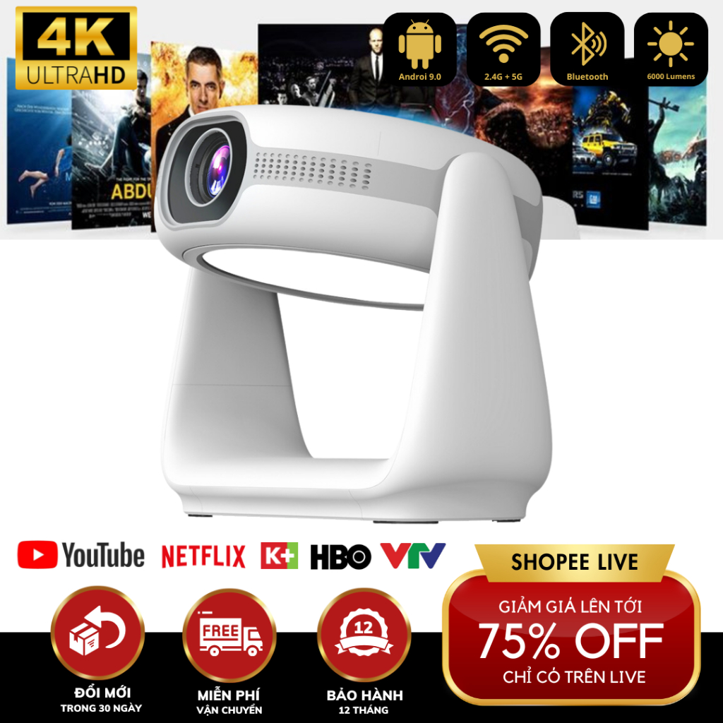 Máy Chiếu Mini Tự Động Lấy Nét KAW K1,Tích Hợp Pin, Chính Hãng BH 12 Tháng