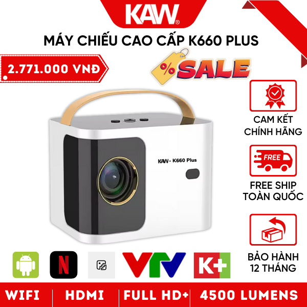 Máy chiếu mini K660 Chất lượng Siêu Nét, Tinh Tế, Kết nối wifi, Bluetooth, Điện thoại, Máy tính.