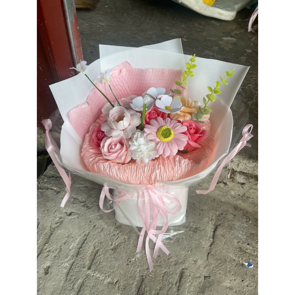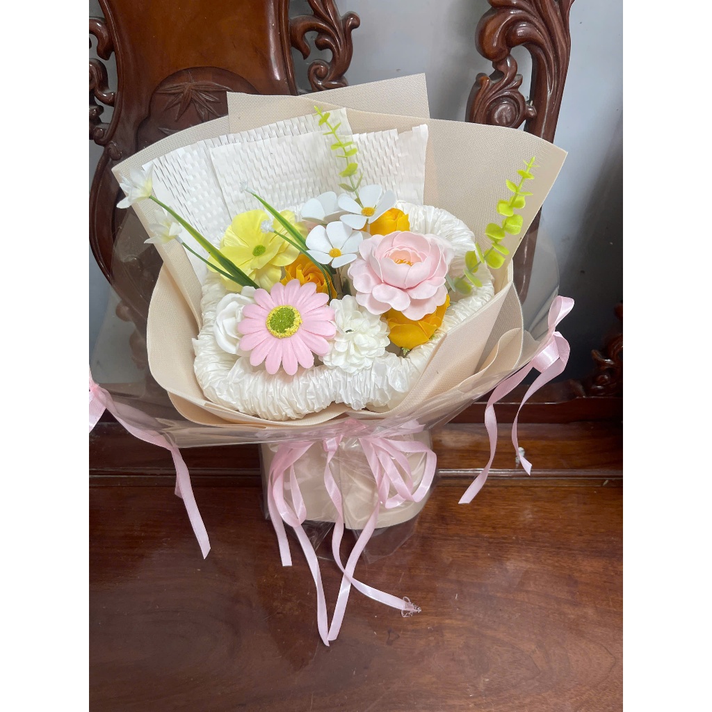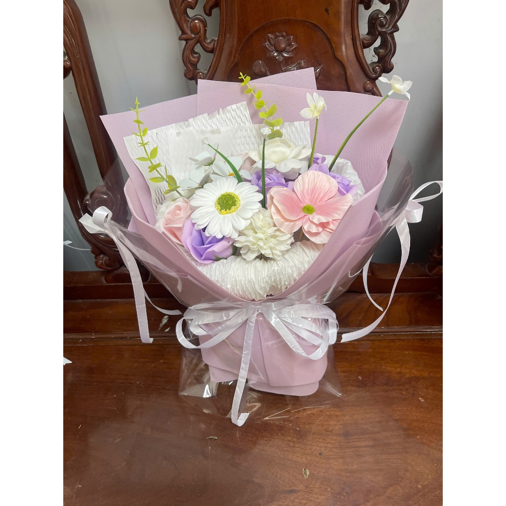 [ Mẫu mới ] Bó hoa sáp mix lụa 15 bông bó dáng tròn cao cấp hiện đại thích hợp làm quà tặng 20/10 sinh nhật
