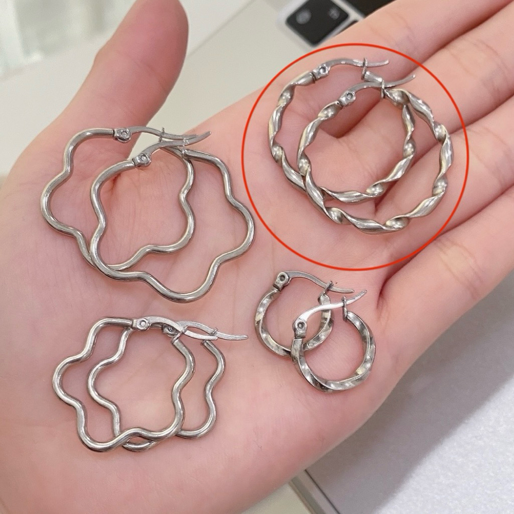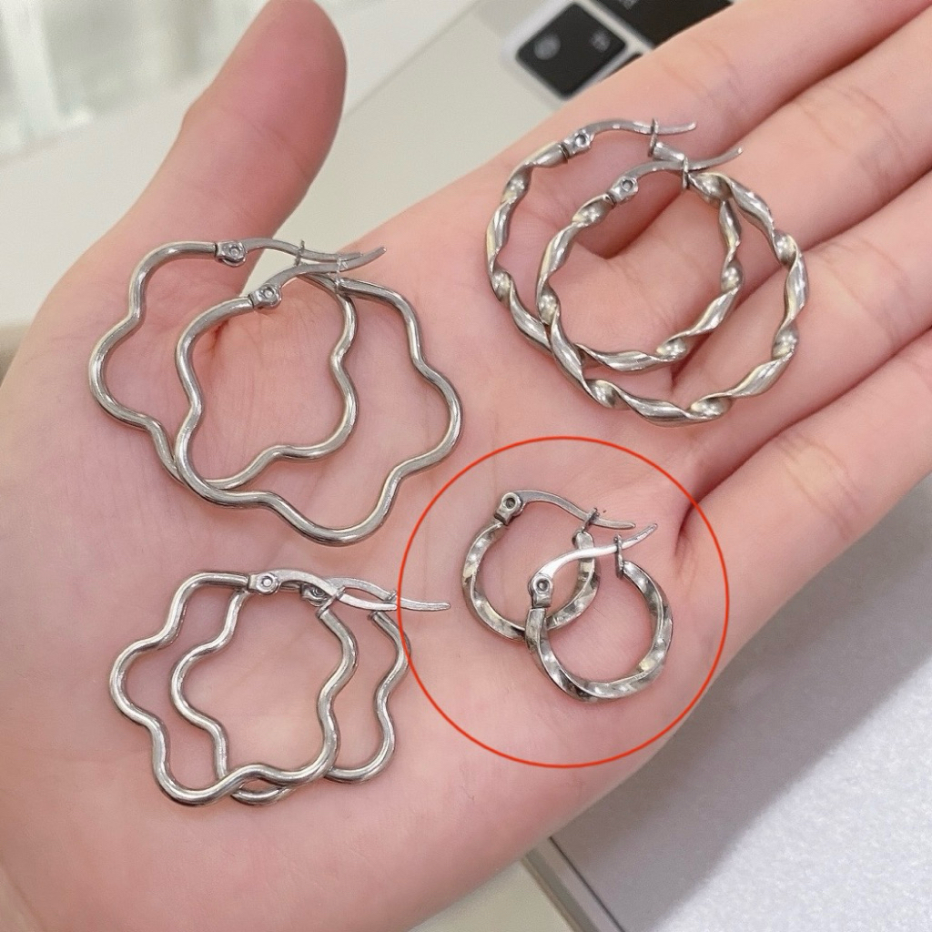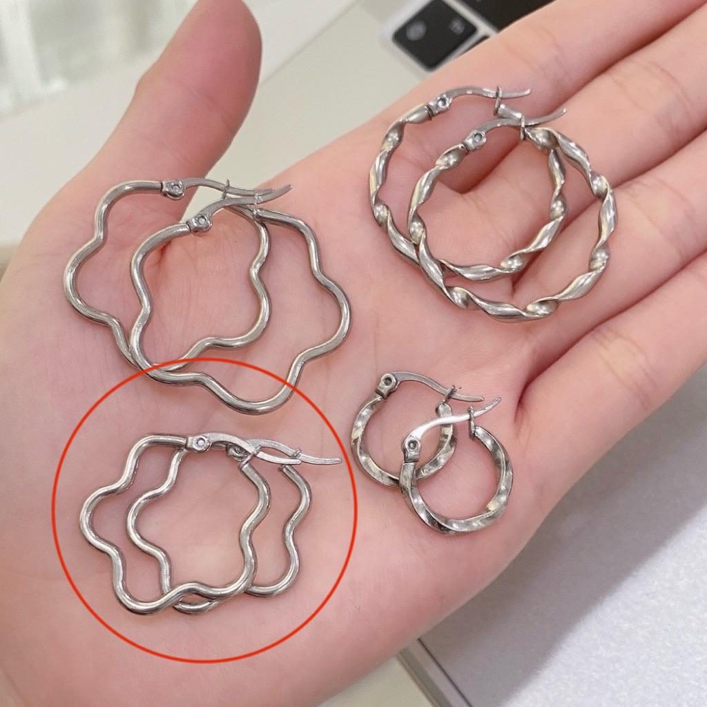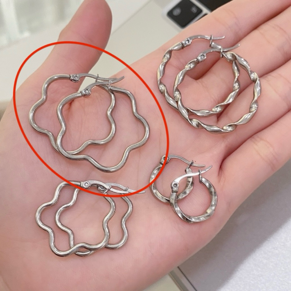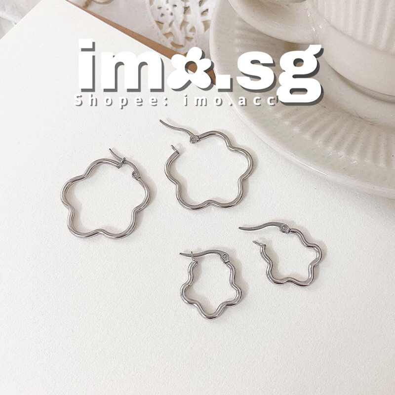Bông tai thép không gỉ hoa 5 cánh nét mãnh tròn imo.sg mang phong cách dễ thương năng động trẻ trung