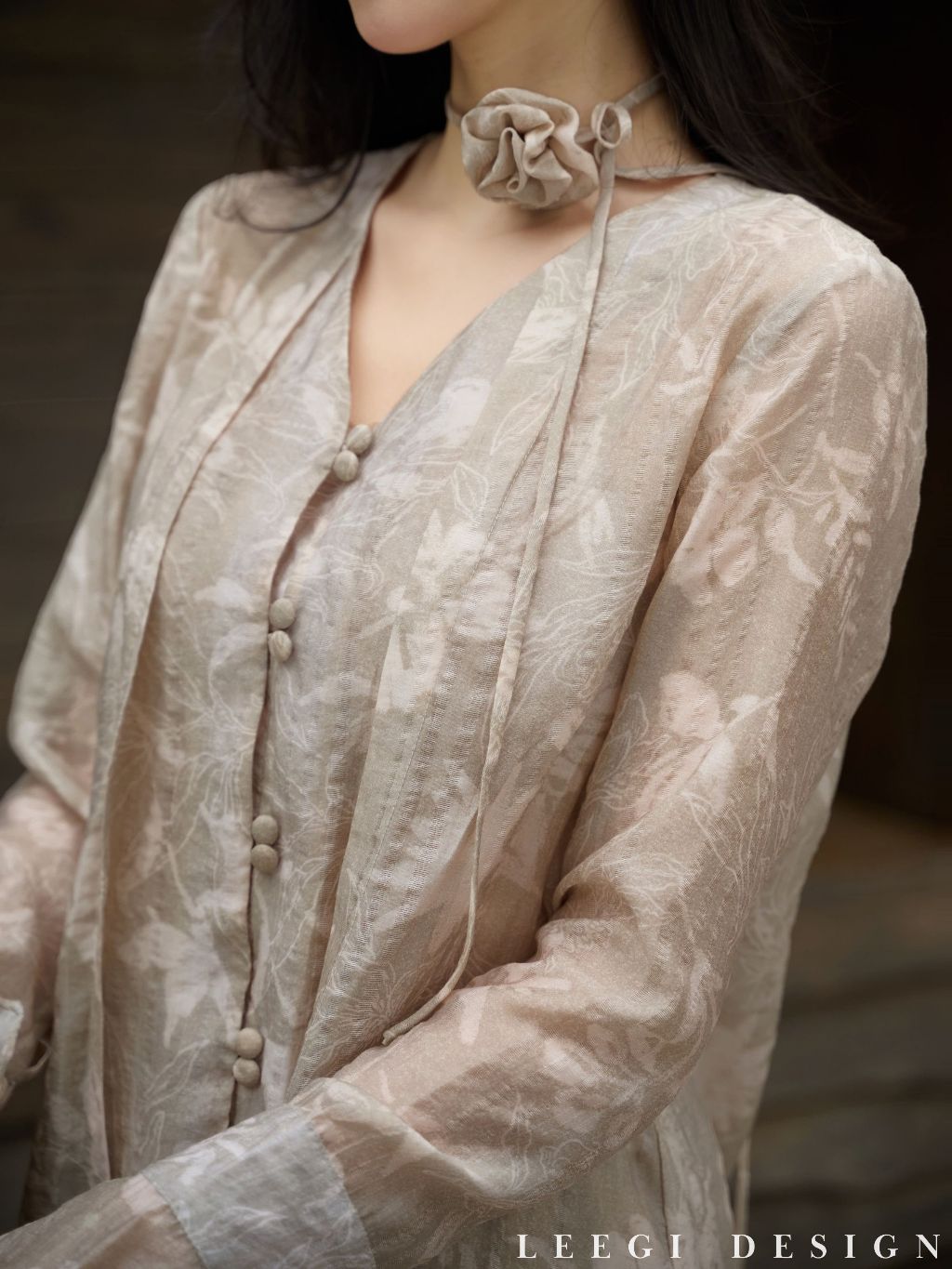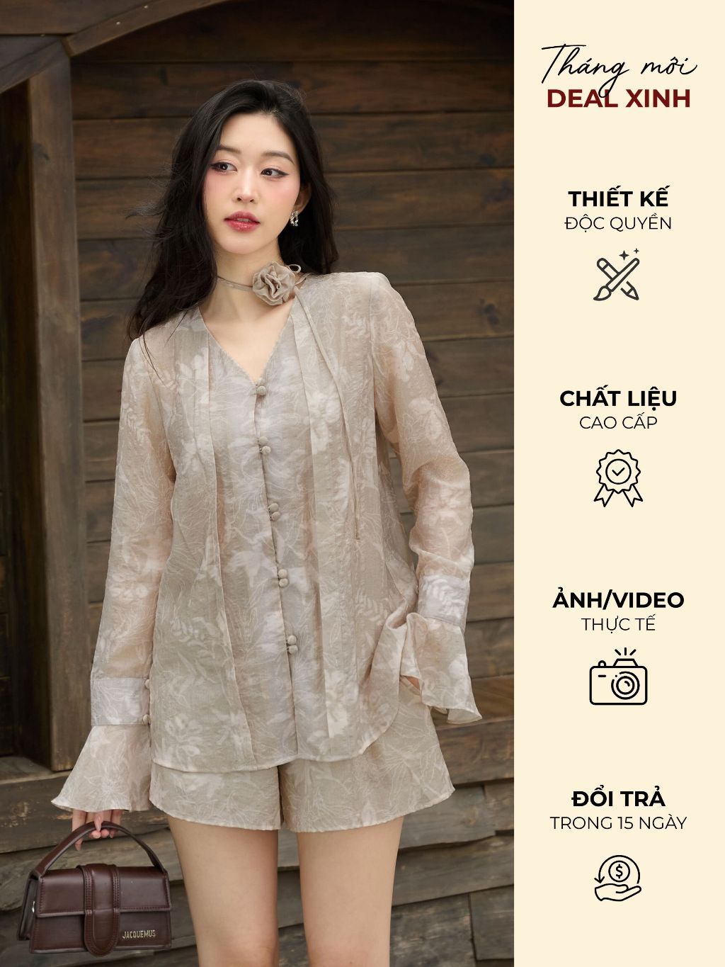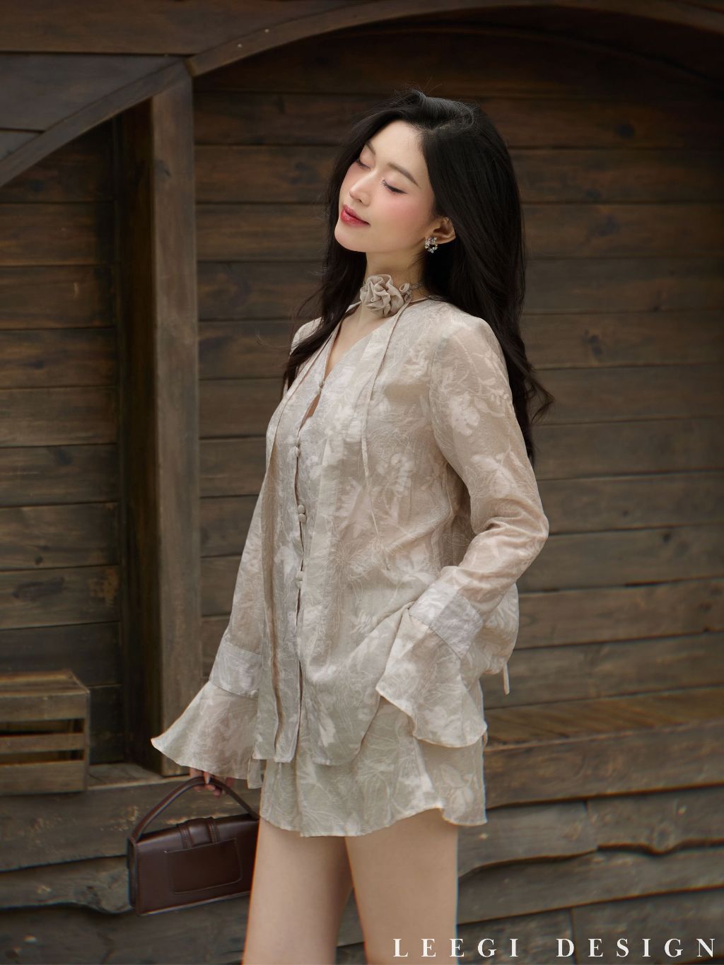 Set Đồ Nữ Sang Chảnh Áo Tơ Tay Bèo Họa Tiết Mix Quần Kèm Choker Hoa LiLiQiQi By LeeGi - AQ855