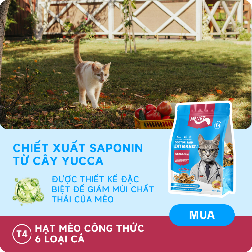 Thức ăn cho mèo Mr.Vet T4 mới 1kg Công thức 6 loại cá Cá ngừ, Cá hồi, Cá Bonito, Cá trứng sấy,...