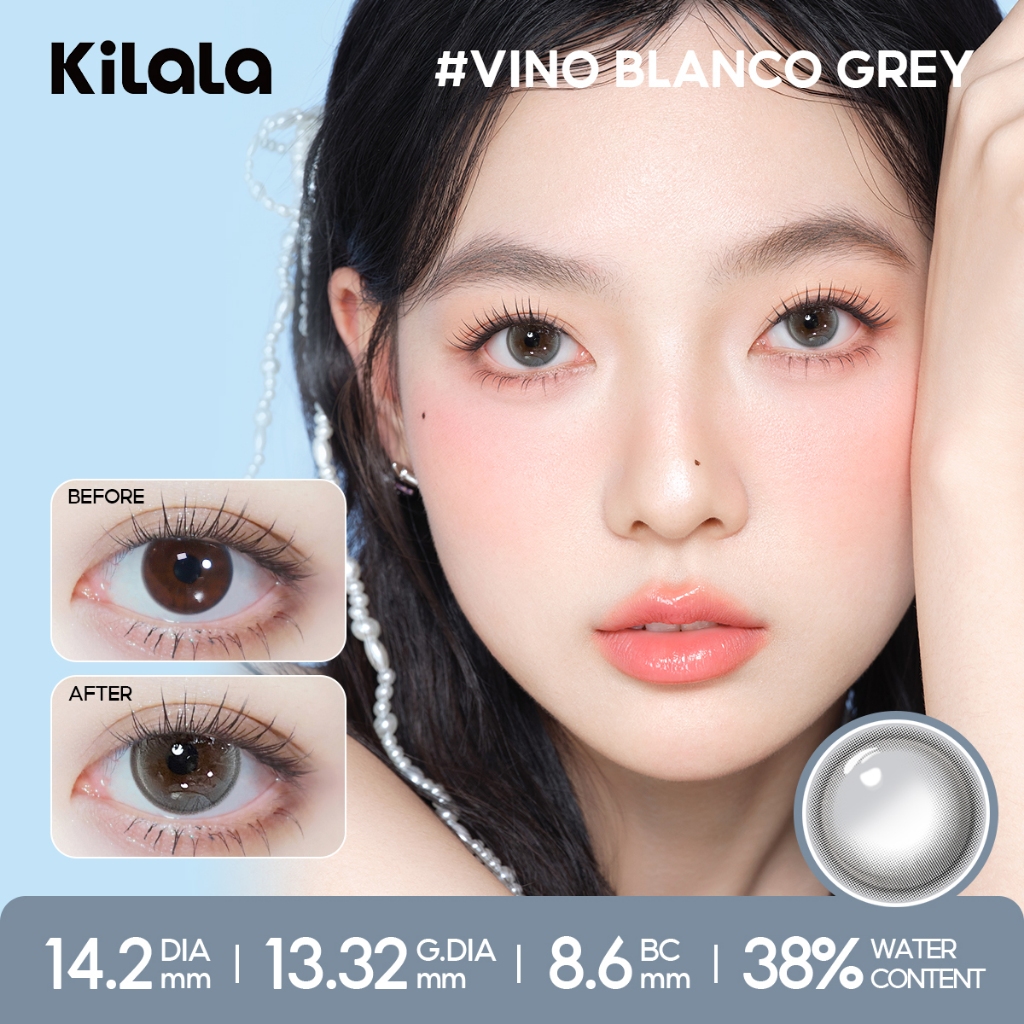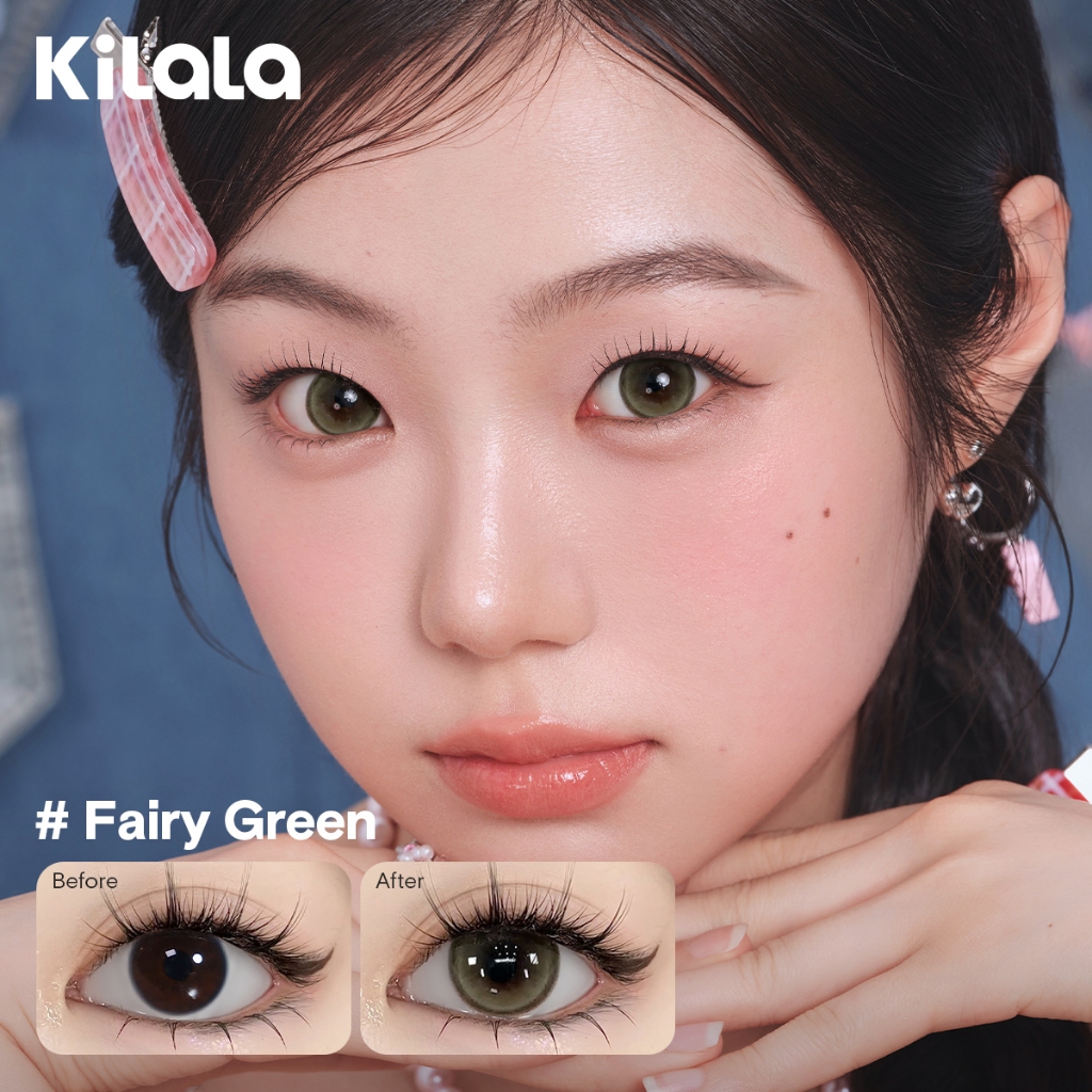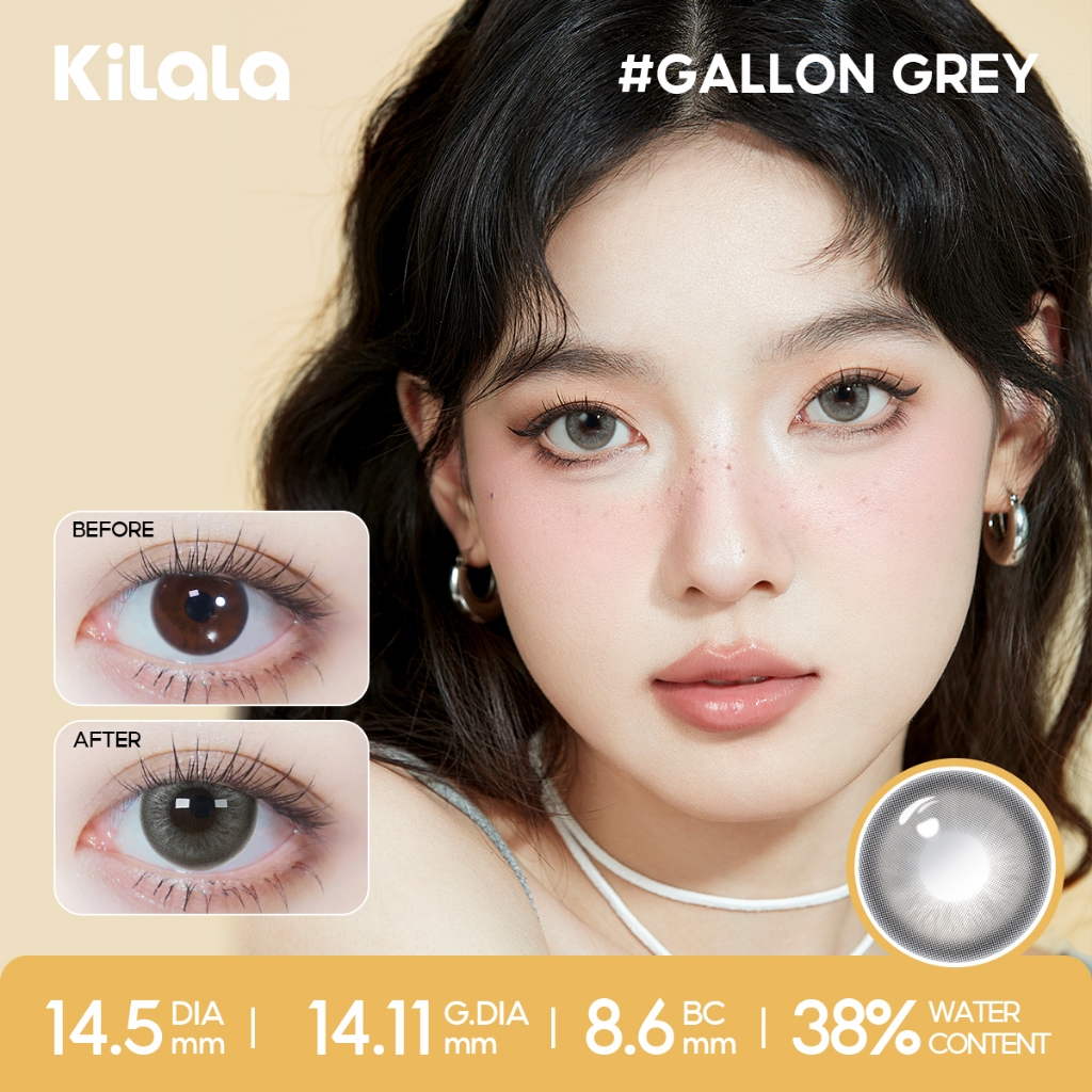 Kính áp tròng Kilala màu đen Gallon Grey/Rosy Pink/Fairy Green lens cận 6 tháng DIA 14.2mm có đ ộ (0-7) 1 cặp.