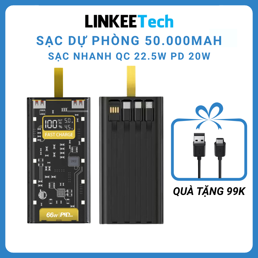 Sạc Dựng Phòng Trong Suốt 30000mAh Với 2 Cổng Sạc Nhanh 22.5w và PD 20W Kèm 4 Đầu Sạc Màn Hình LED- DL Tech