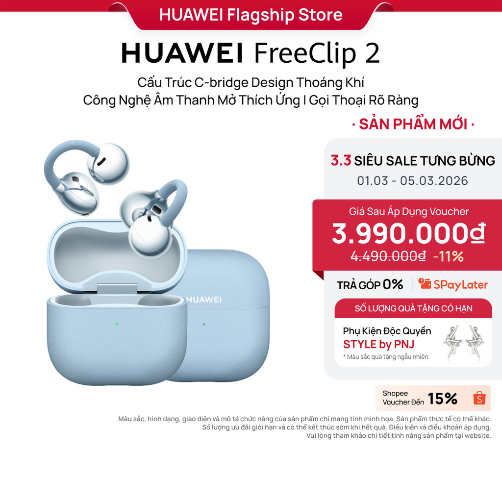 Tai Nghe HUAWEI FreeClip 2 | Cấu Trúc C-bridge Design Thoáng Khí | Công Nghệ Âm Thanh Mở Thích Ứng | Gọi Thoại Rõ Ràng
