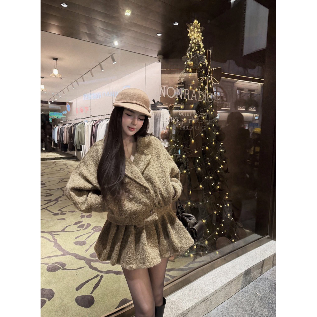 𝗝𝗘𝗡𝗡𝗬𝗖𝗟𝗢𝗦𝗘𝗧 ® Set dạ áo lông cổ vest tay dập ly + Chân váy xếp ly chuẩn mẫu mặc hàng cao cấp