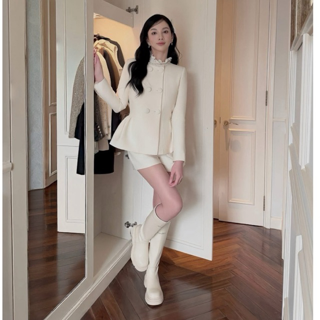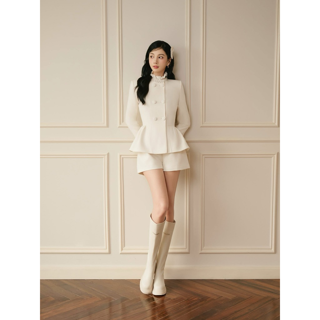 “ 𝗟𝗨𝗖𝗬 𝗦𝗘𝗧 ” Áo khoác dạ tweed cổ đá chiết eo xoè đính cúc bọc to + Quần short -mặc đi chơi , đi làm