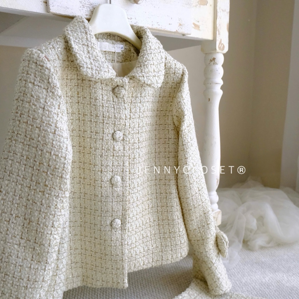 “𝗛𝗔𝗡𝗔𝗟 𝗦𝗘𝗧 ” Áo khoác dạ cổ sen tay đính nơ khuy bọc dày dặn + Chân váy chữ A xẻ tà đính nơ-nhẹ nhàng tiểu thư ( Sẵn)