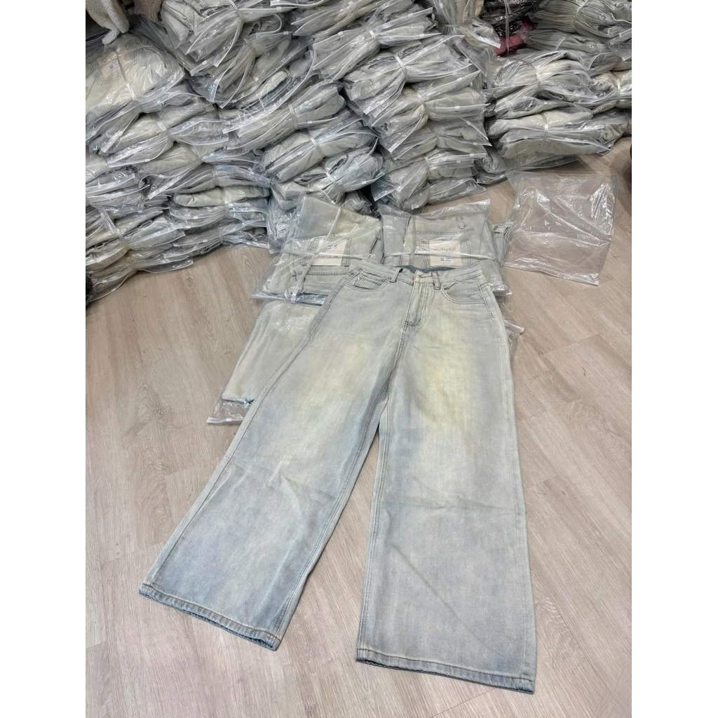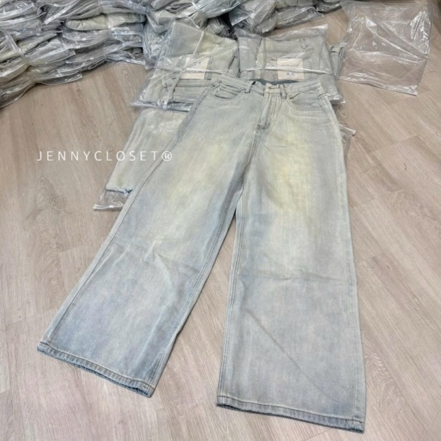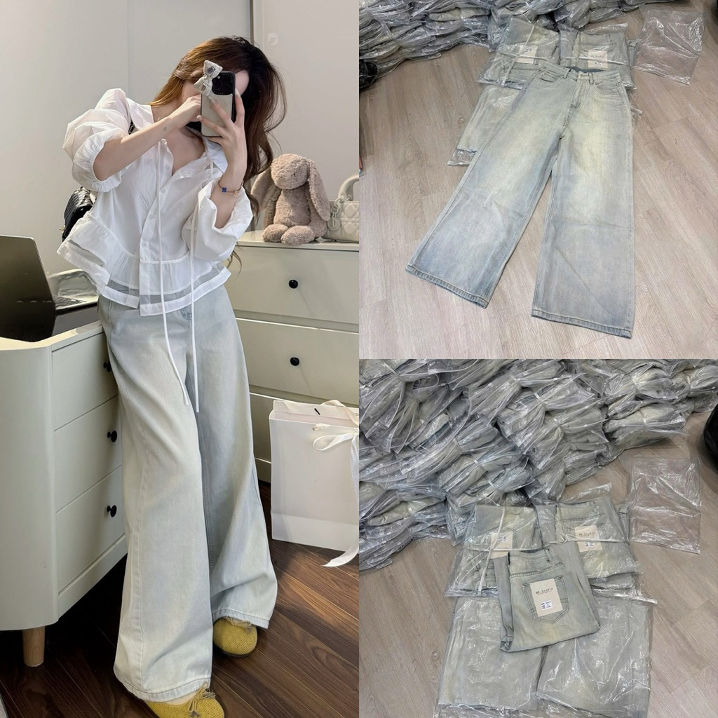 Quần jean nữ cạp cao ống rộng màu ánh bạc chất liệu denim-hàng QCCC-Q24