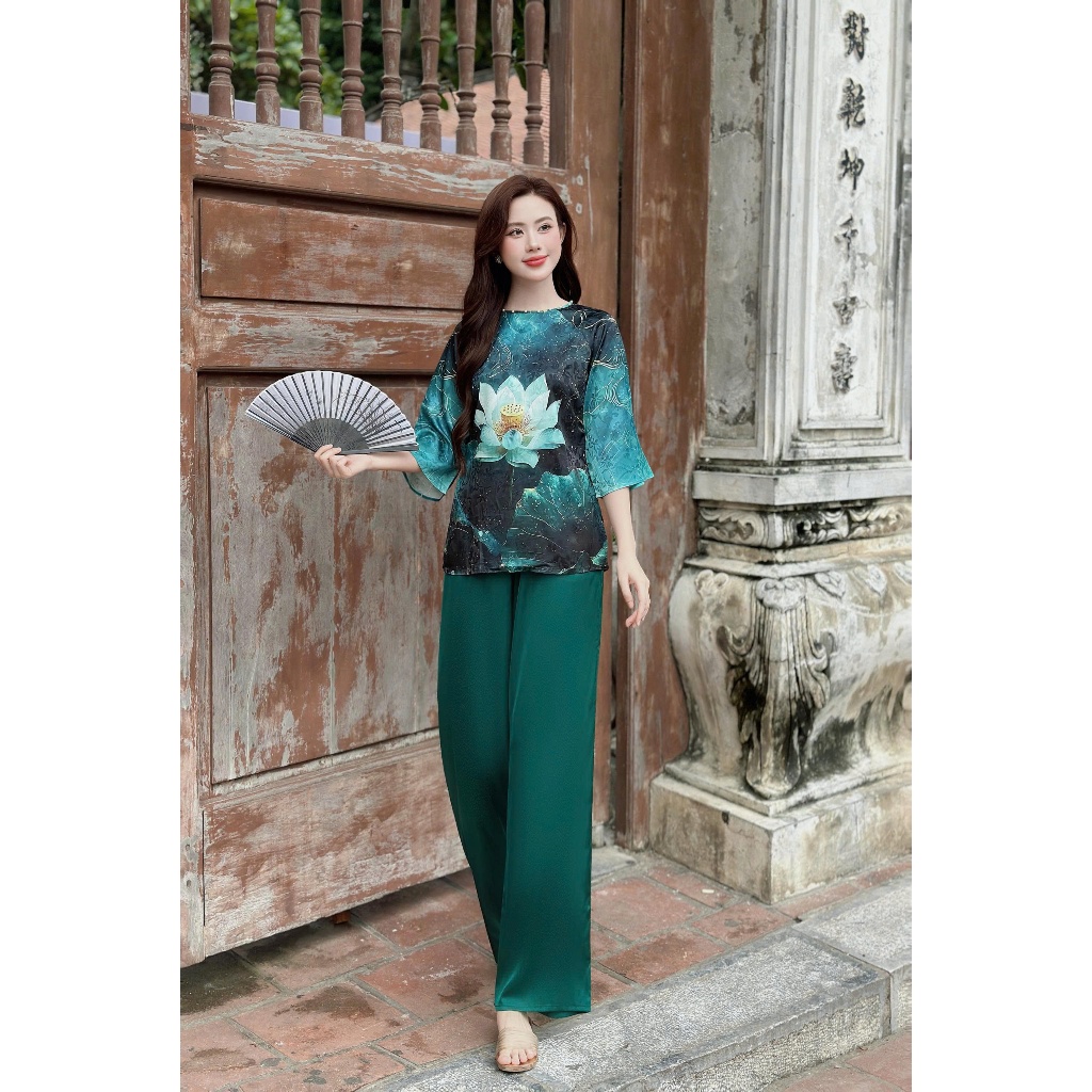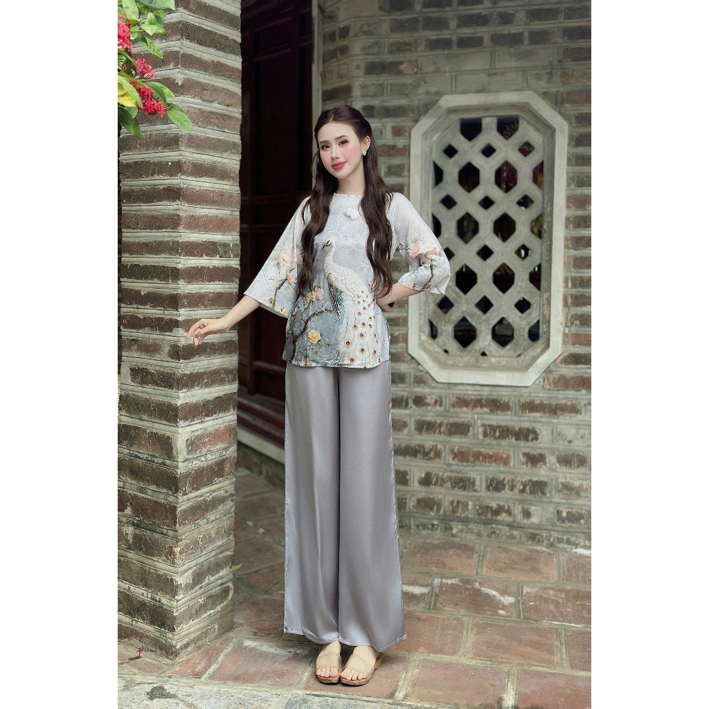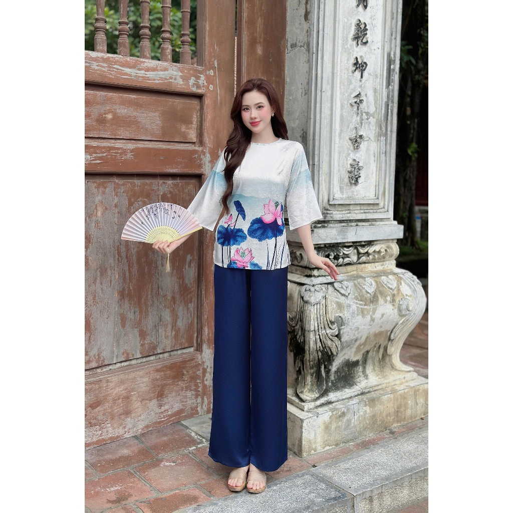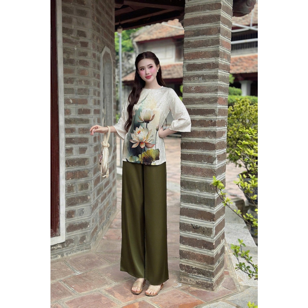 Bộ lam gấm in 3D xẻ tà Vy Linh tay lỡ chất liệu gấm phối lụa latin thoáng mát không bai nhão thấm hút mồ hôi s1325 3D