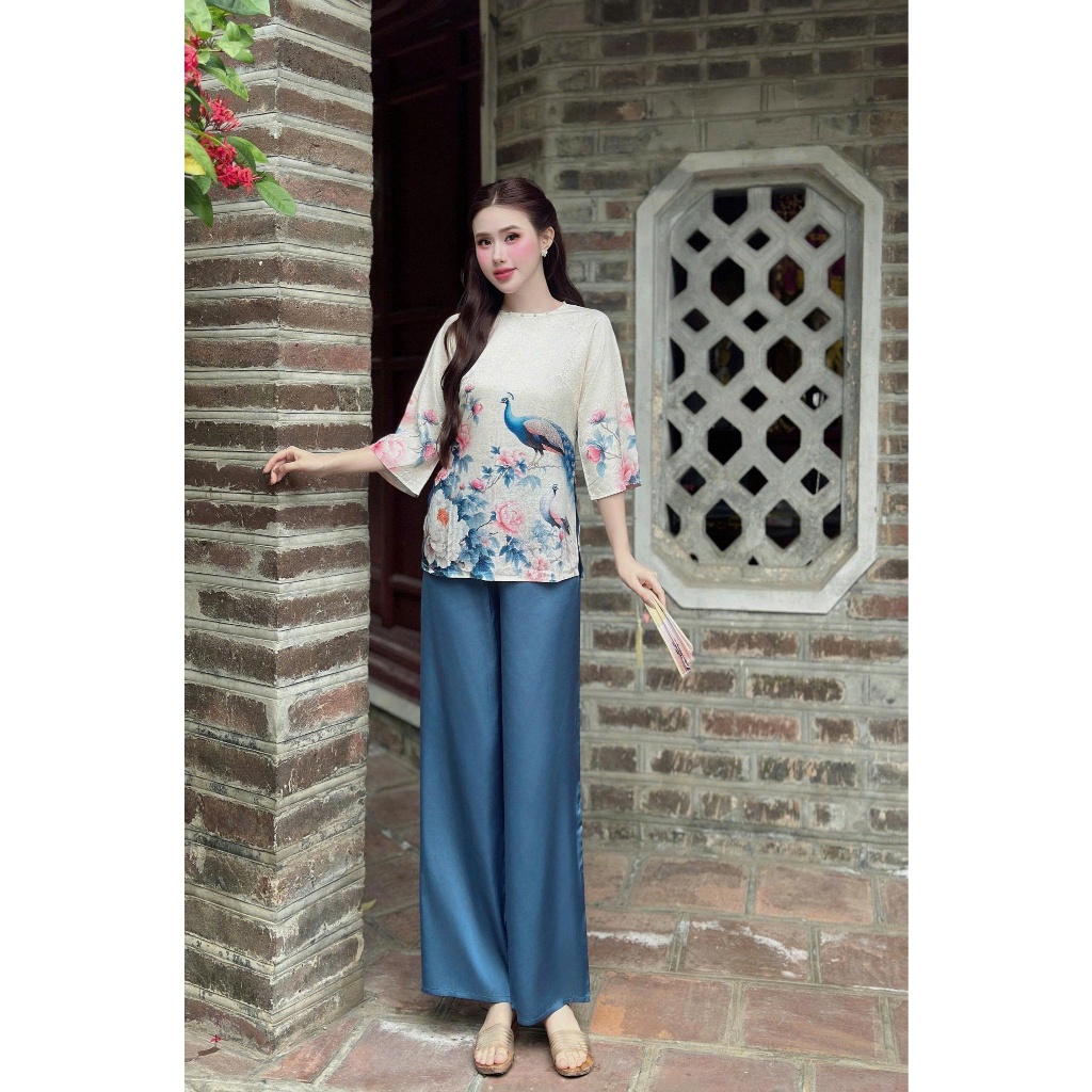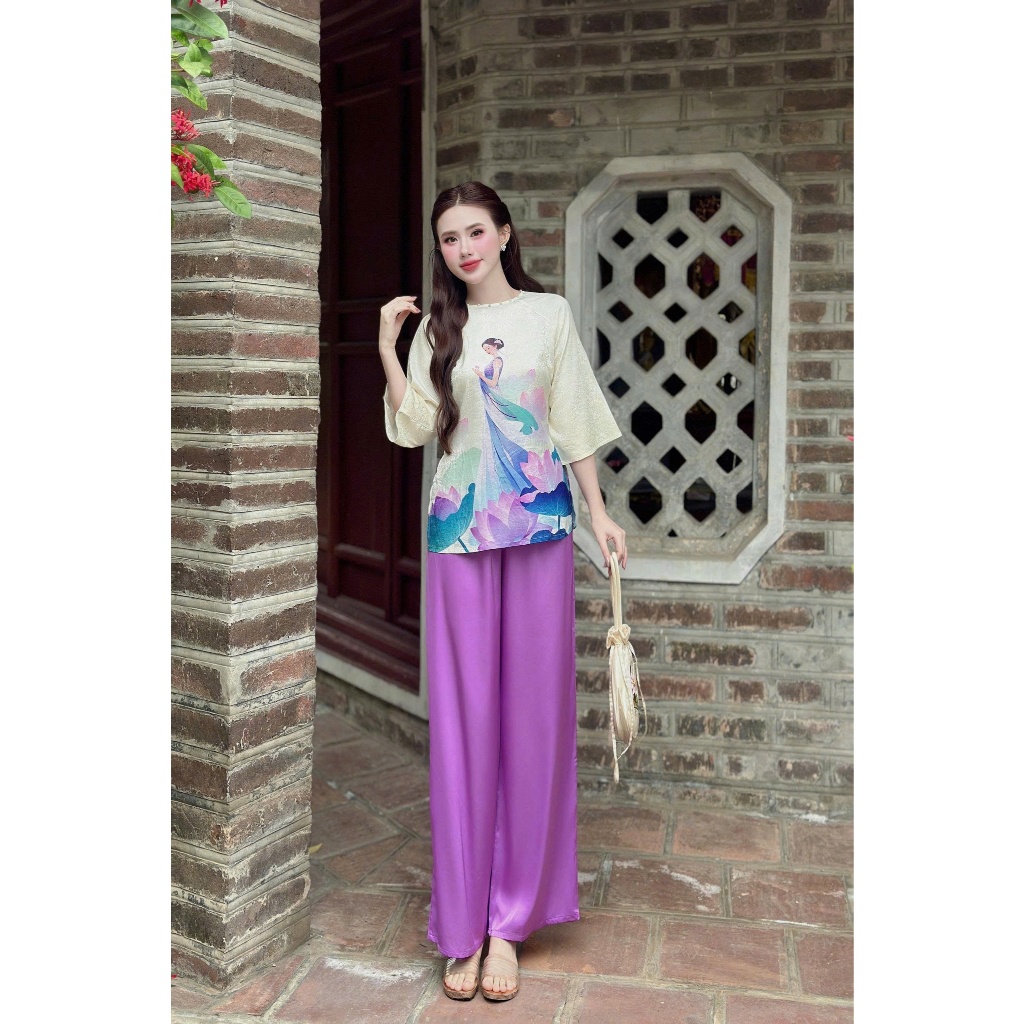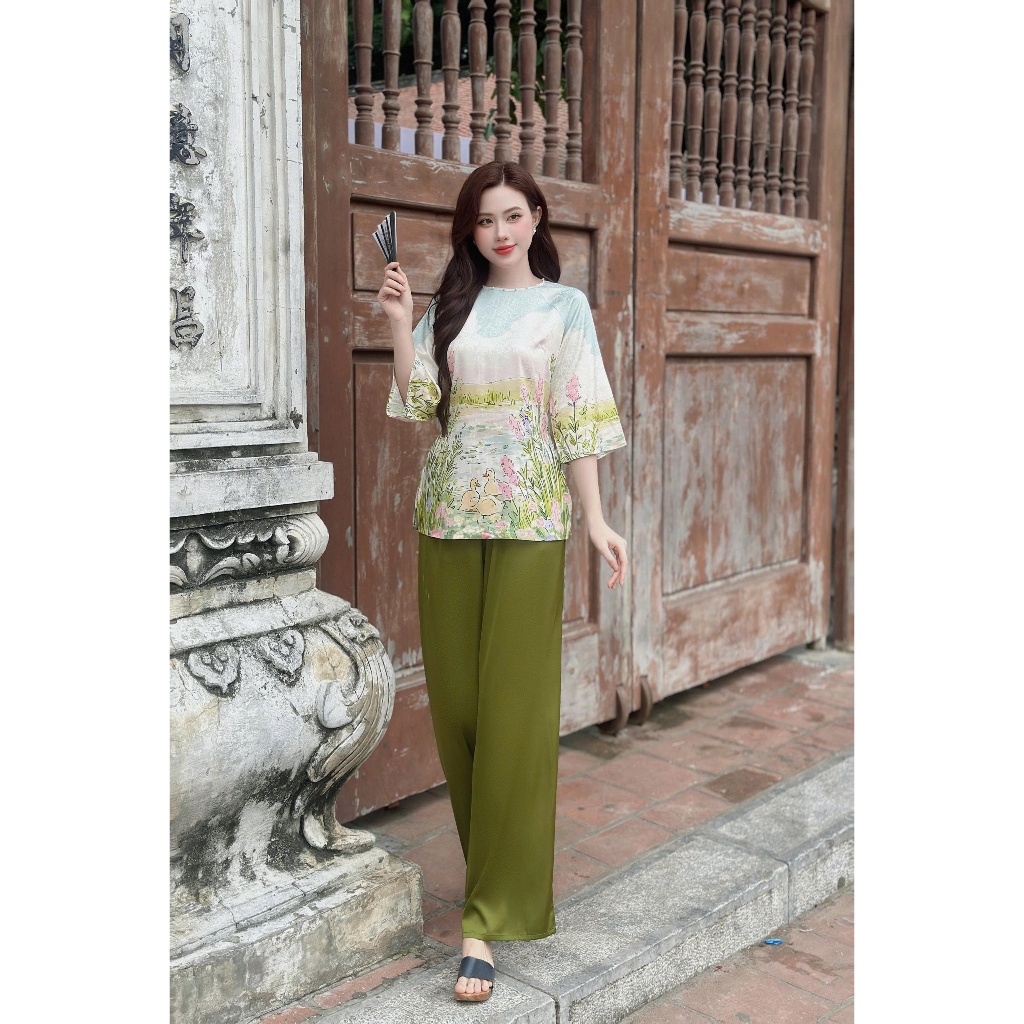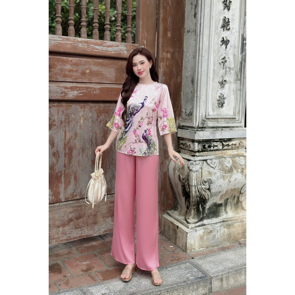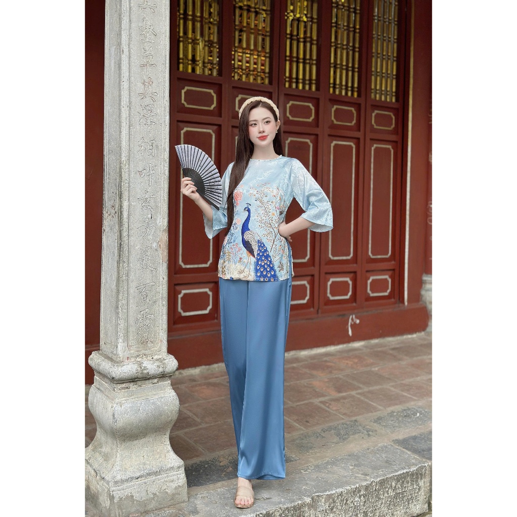 Bộ lam gấm in 3D xẻ tà Vy Linh tay lỡ chất liệu gấm phối lụa latin thoáng mát không bai nhão thấm hút mồ hôi s1325 3D