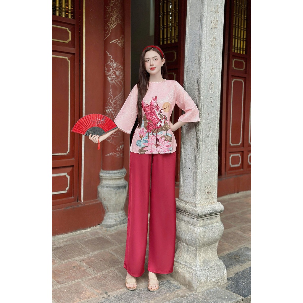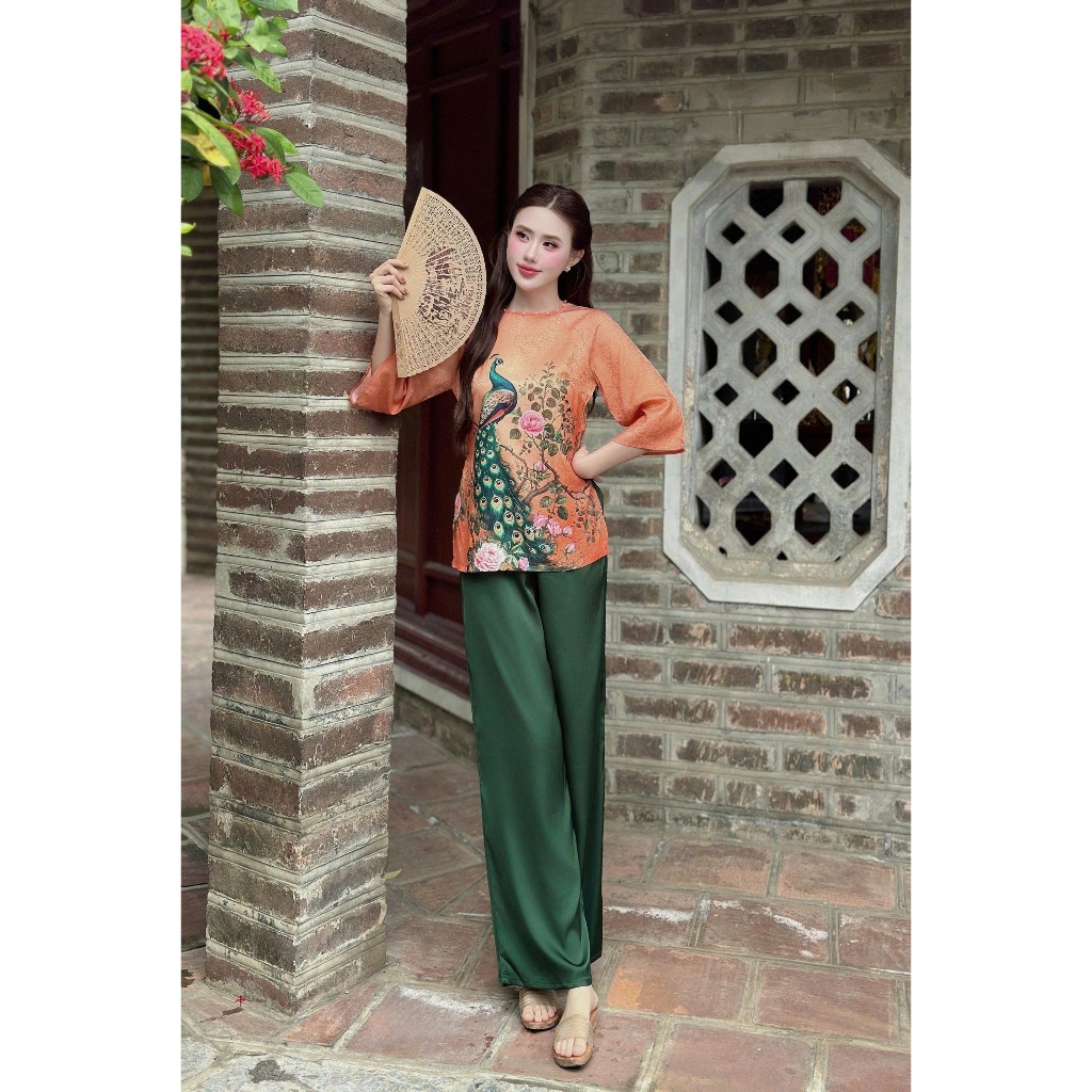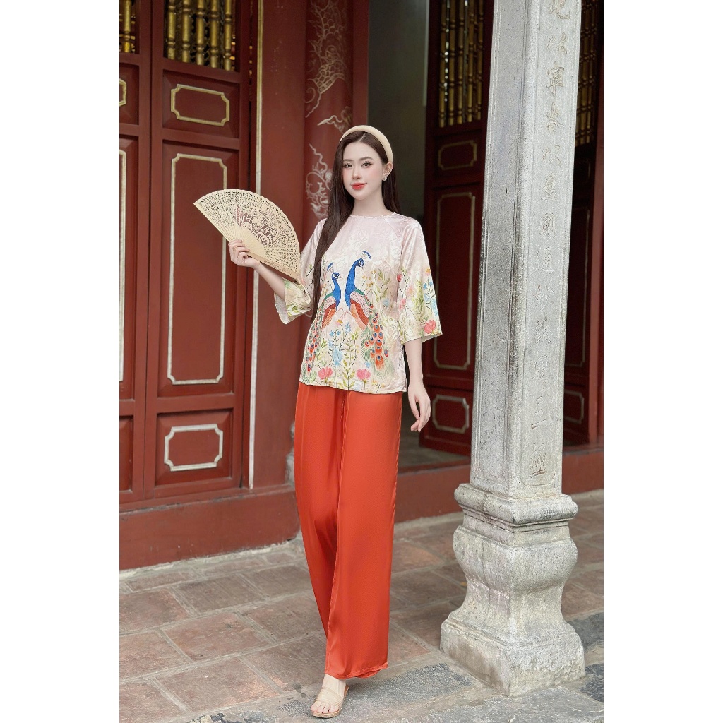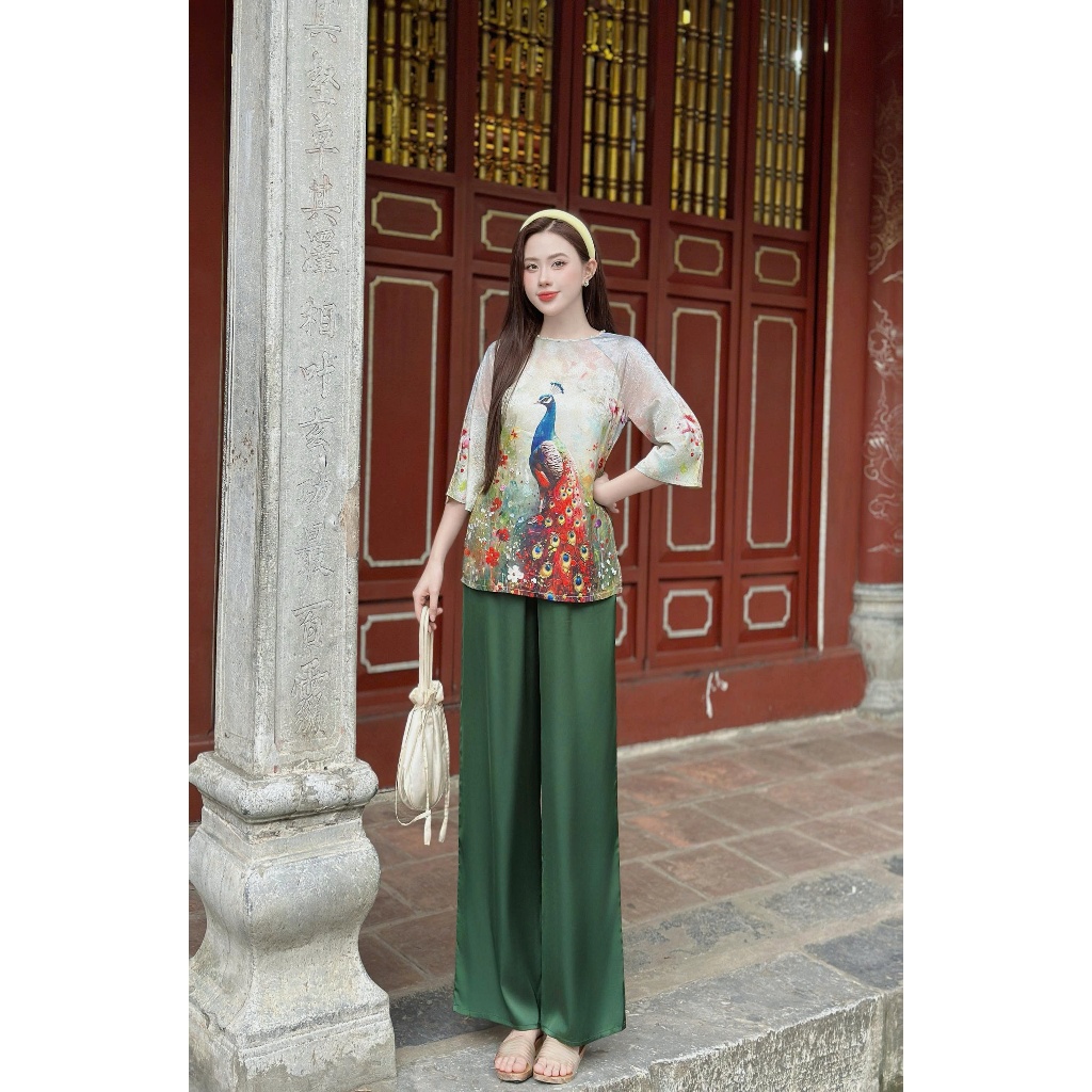 Bộ lam gấm in 3D xẻ tà Vy Linh tay lỡ chất liệu gấm phối lụa latin thoáng mát không bai nhão thấm hút mồ hôi s1325 3D
